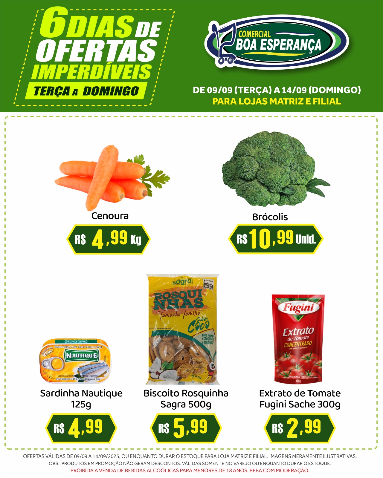 As ofertas estão disponíveis em ambas as unidades do Comercial Boa Esperança, enquanto durarem os estoques: