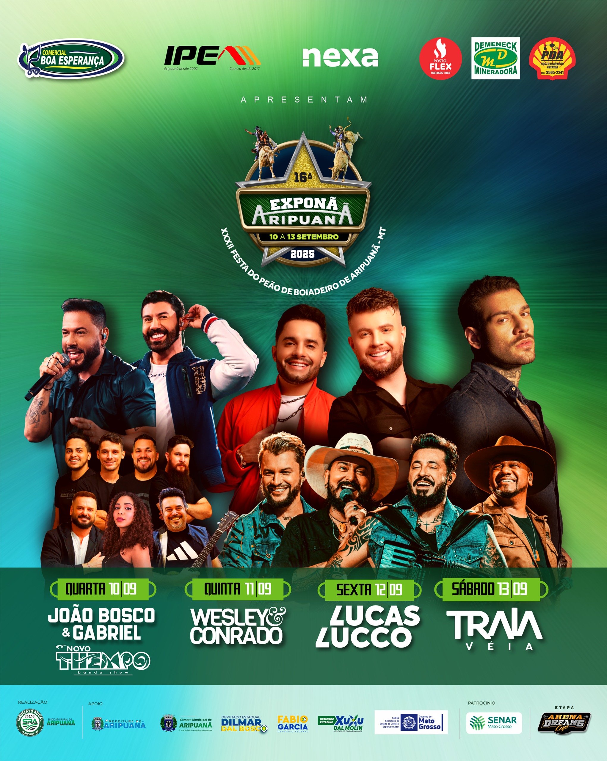 O município de Aripuanã se prepara para viver dias de festa, tradição e entretenimento com a realização da 16ª edição da Exponã e da 32ª Festa do Peão Boiadeiro, que acontecem de 10 a 13 de setembro, no espaço do Clube de Campo. A abertura oficial está marcada para esta quarta-feira (10), às 19h, com entrada gratuita em todas as noites.