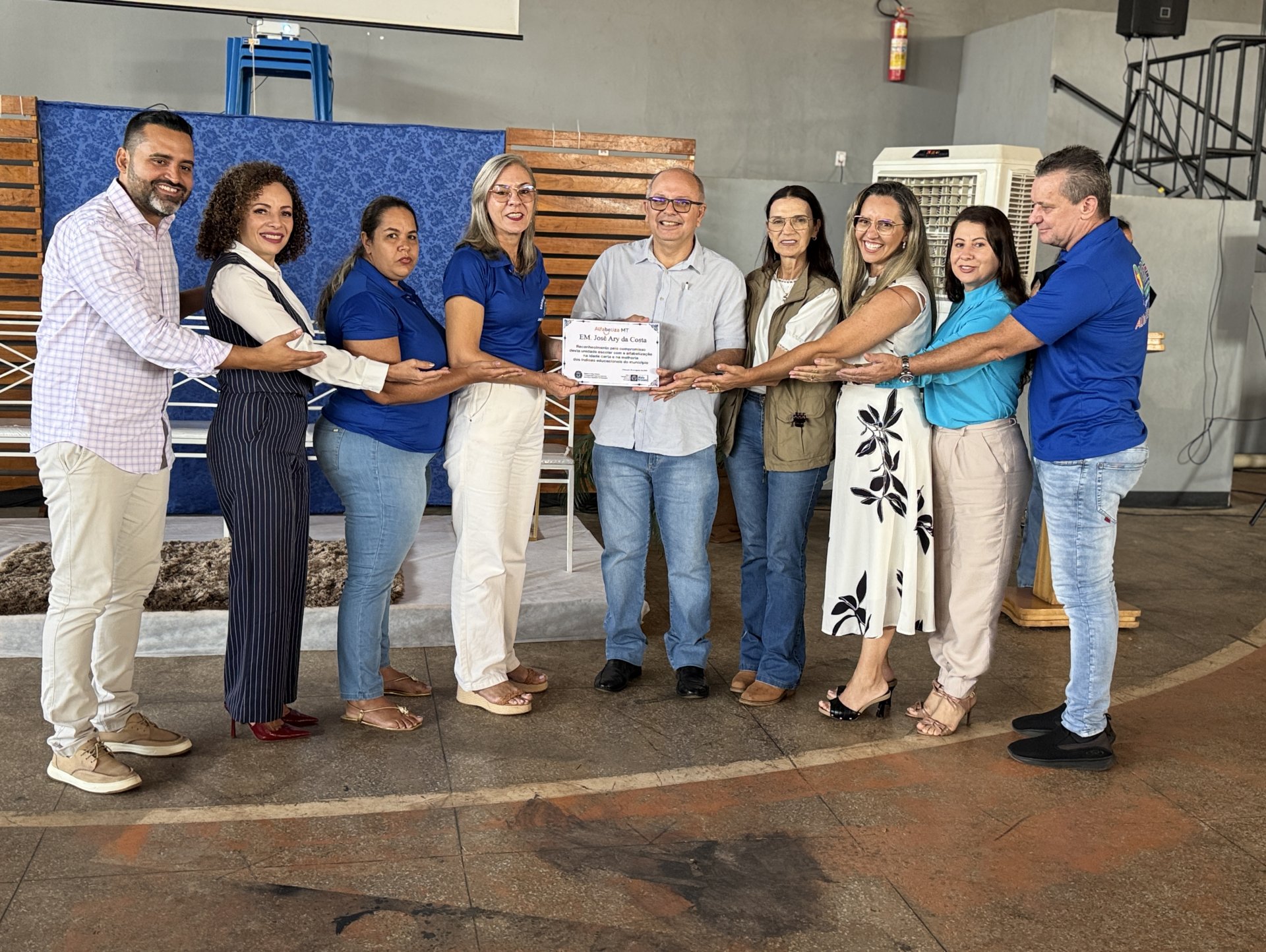 Premiações: A Escola Municipal José Ary da Costa foi homenageada pelo destaque no Programa Alfabetiza MT. Professores também receberam reconhecimento pelos resultados obtidos na alfabetização na idade certa.