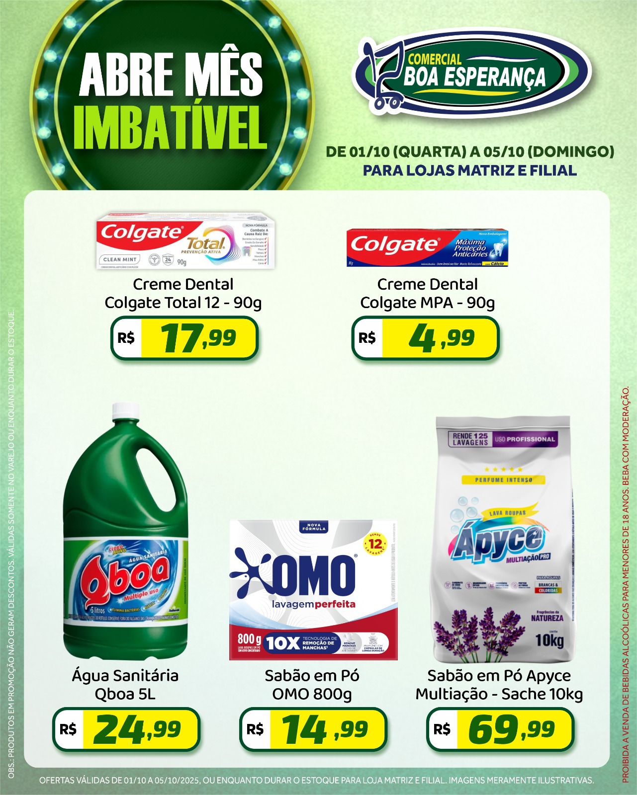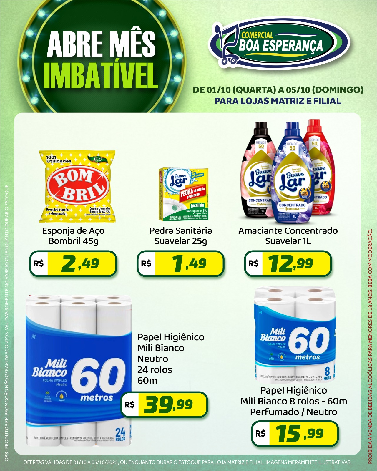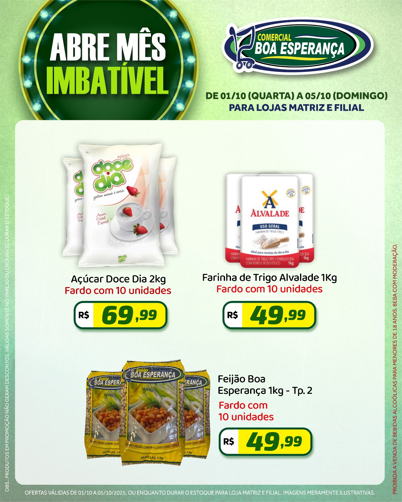 A campanha segue até o dia 05 de outubro e é uma oportunidade para os consumidores abastecerem suas casas com produtos de qualidade a preços especiais. As ofertas são válidas enquanto durarem os estoques.