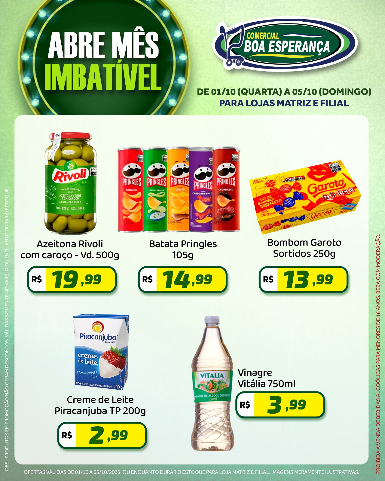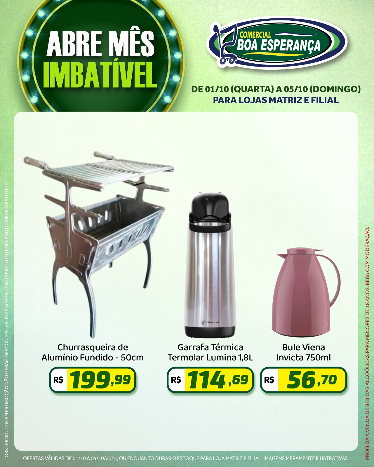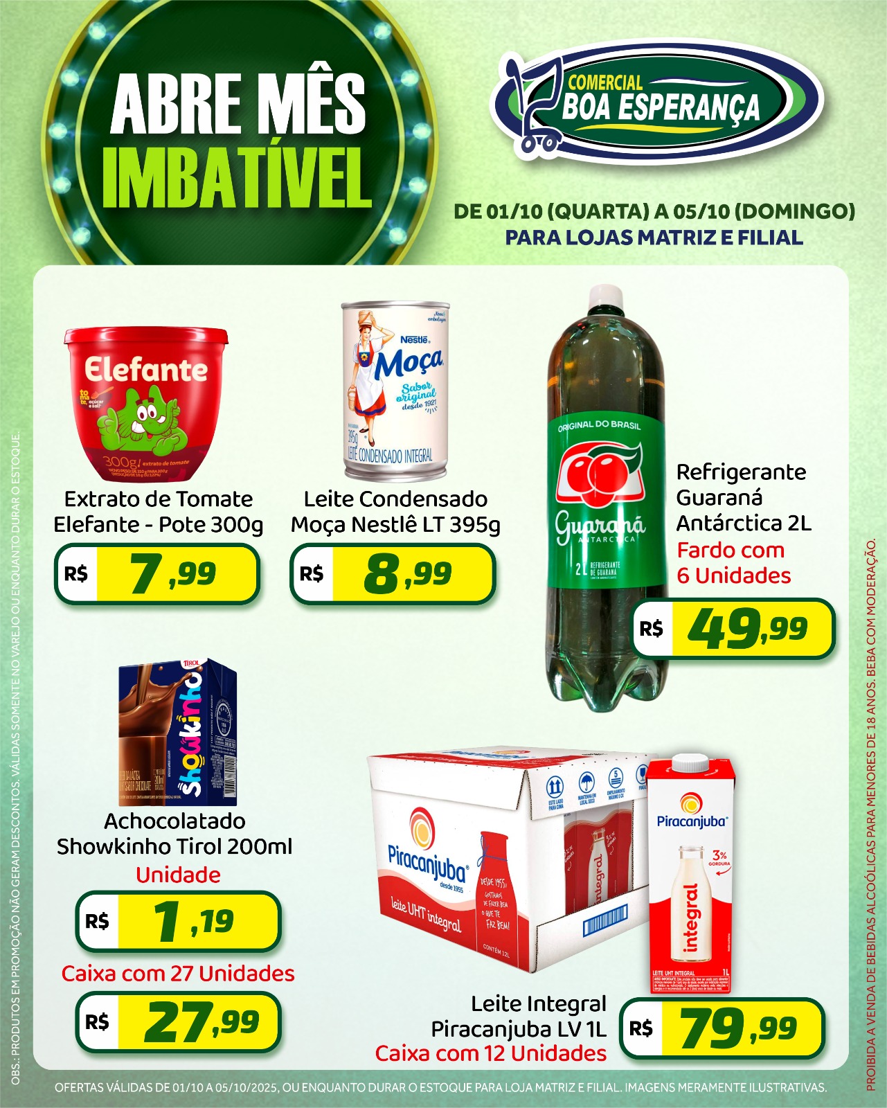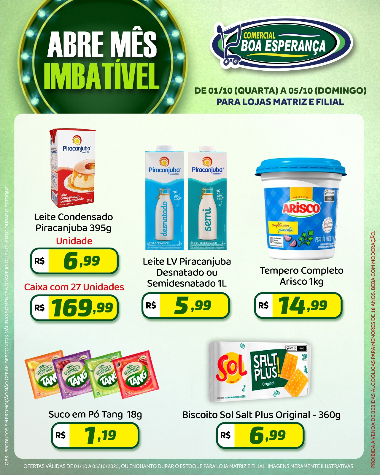 A campanha segue até o dia 05 de outubro e é uma oportunidade para os consumidores abastecerem suas casas com produtos de qualidade a preços especiais. As ofertas são válidas enquanto durarem os estoques.