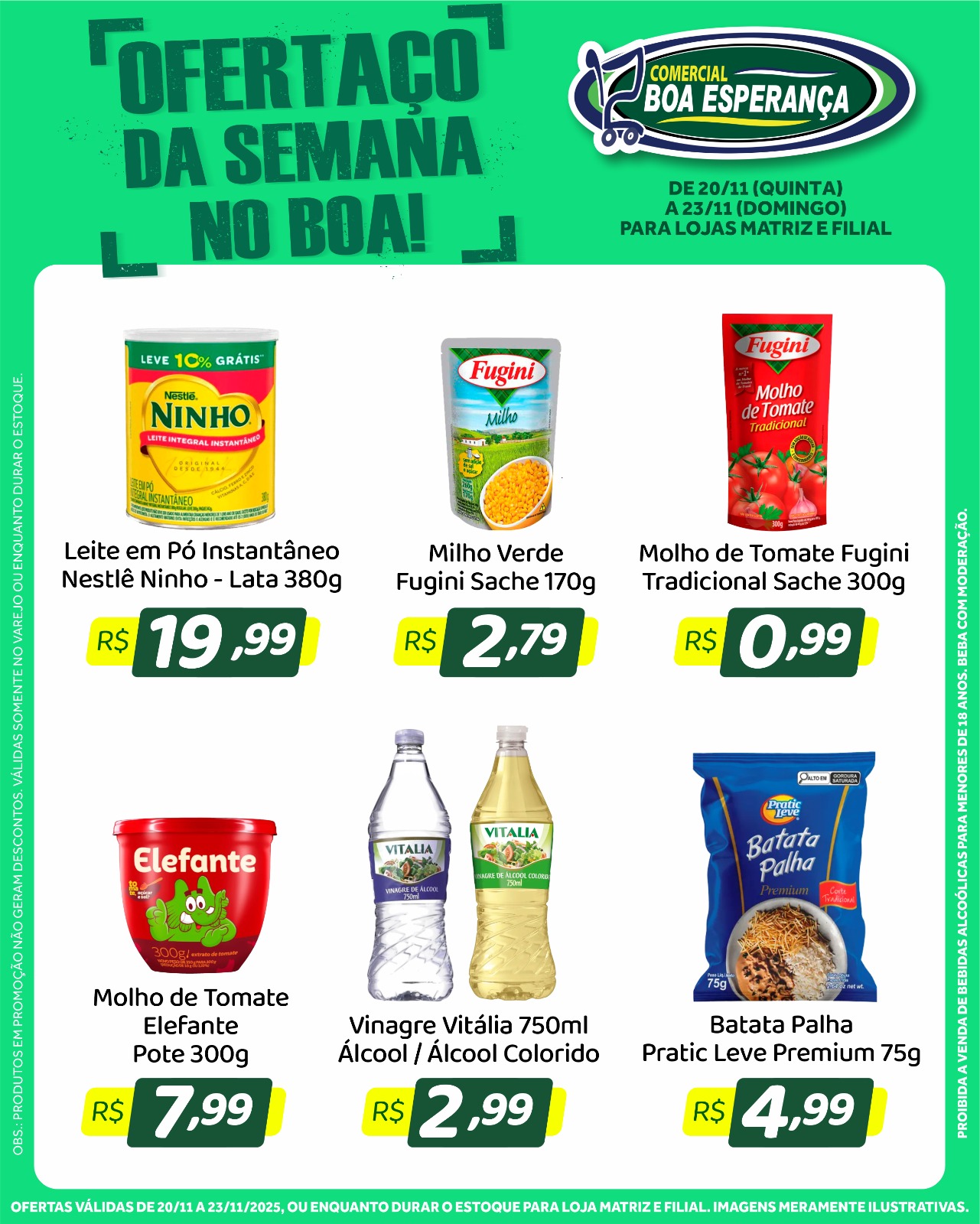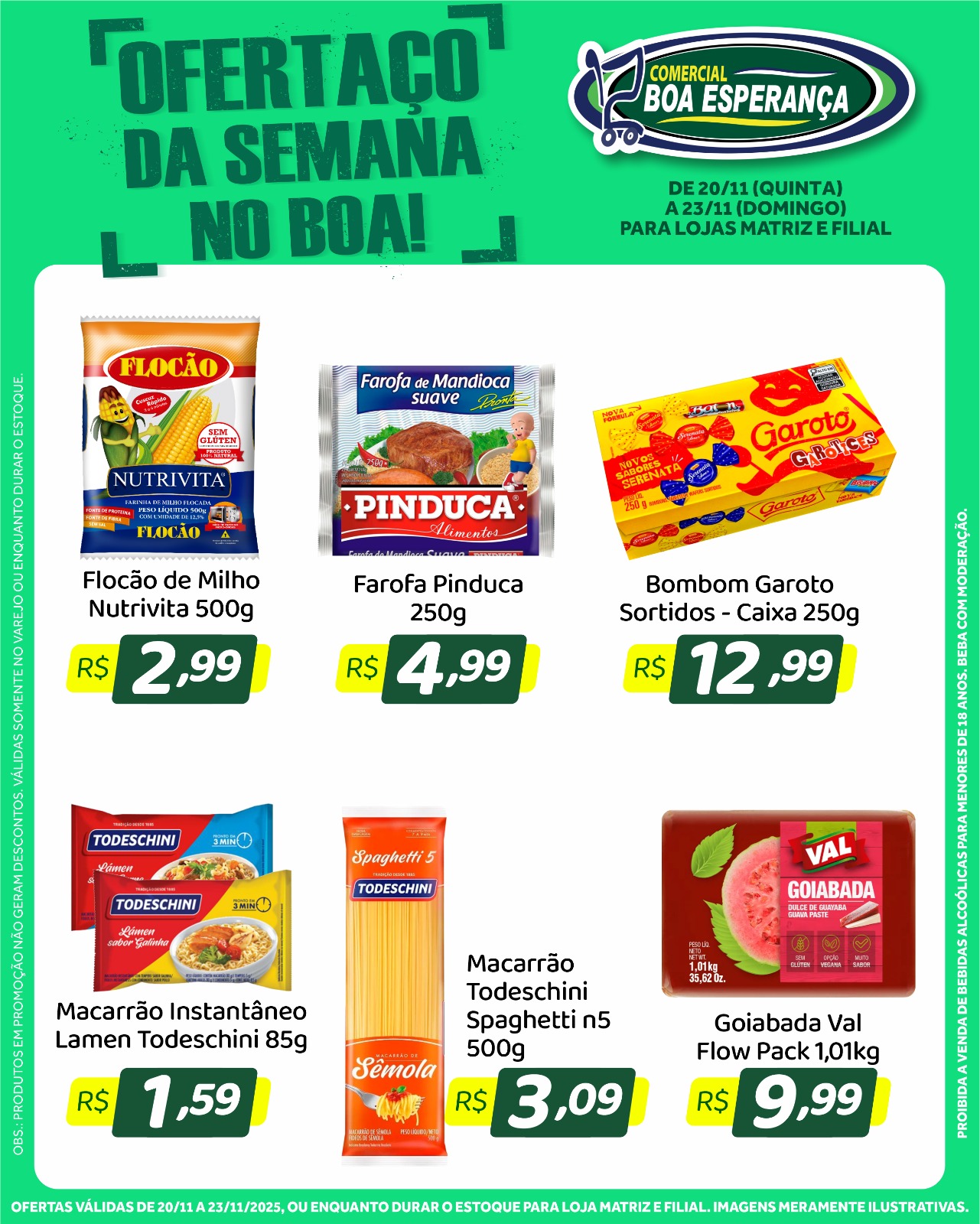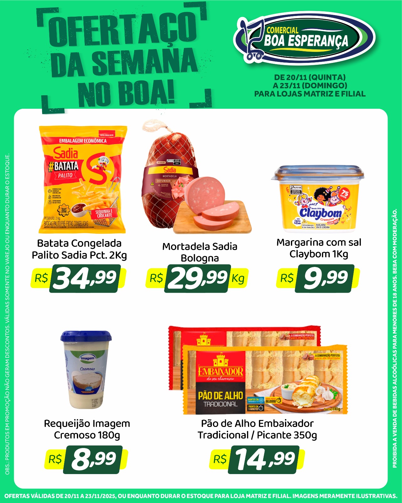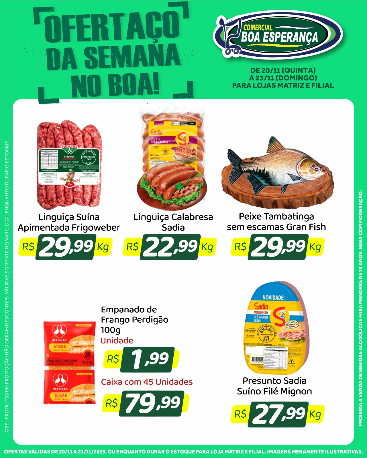 As promoções estão disponíveis nas duas unidades do Comercial Boa Esperança: