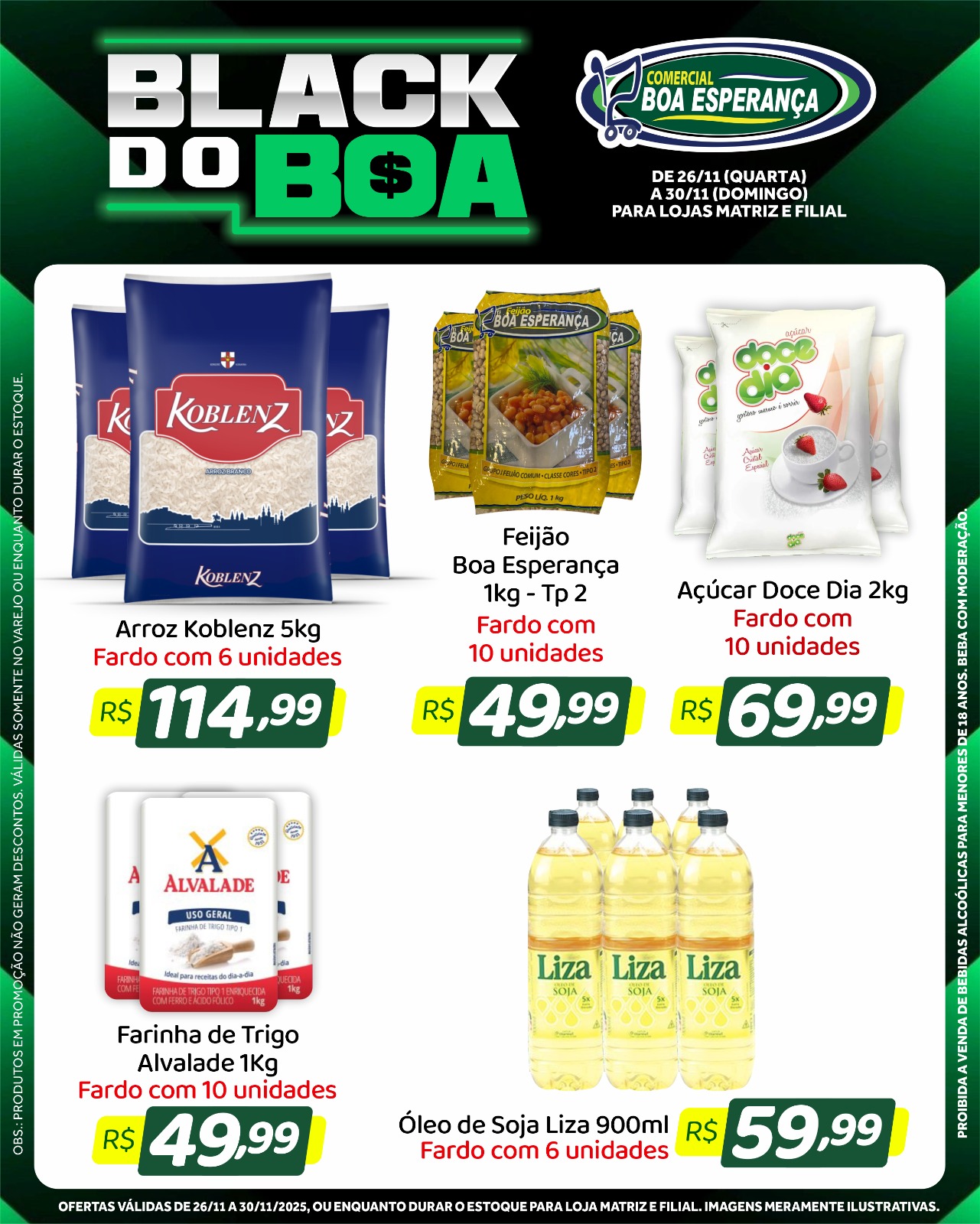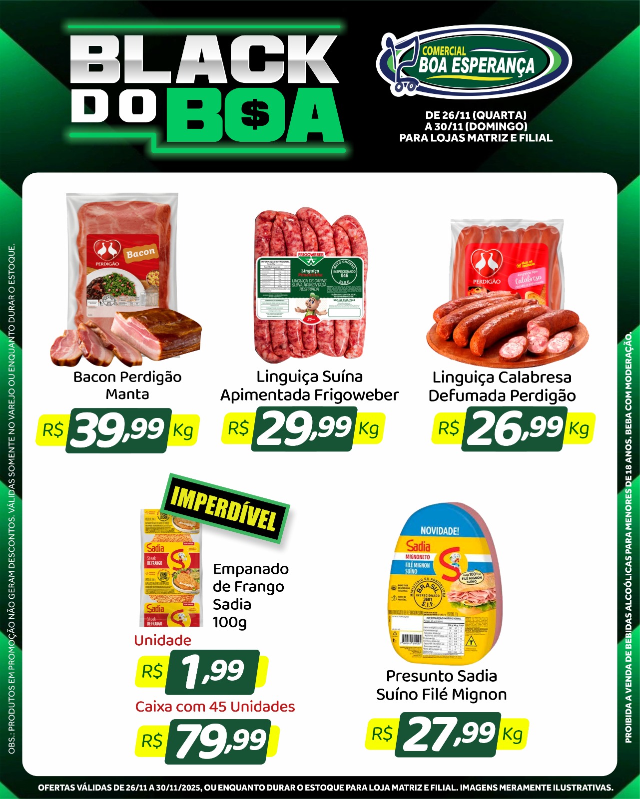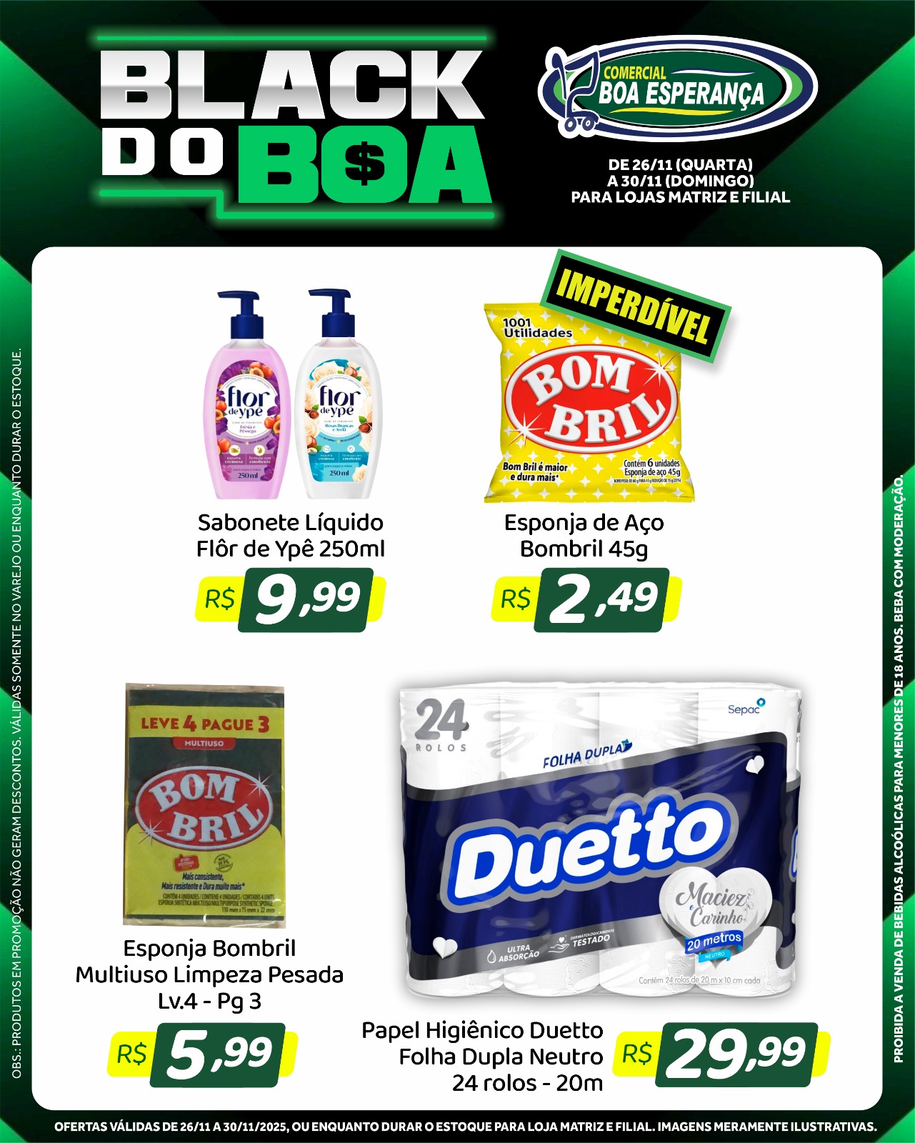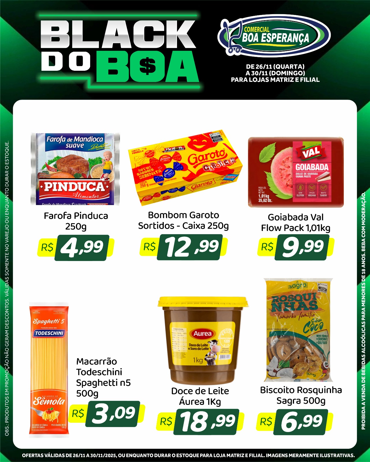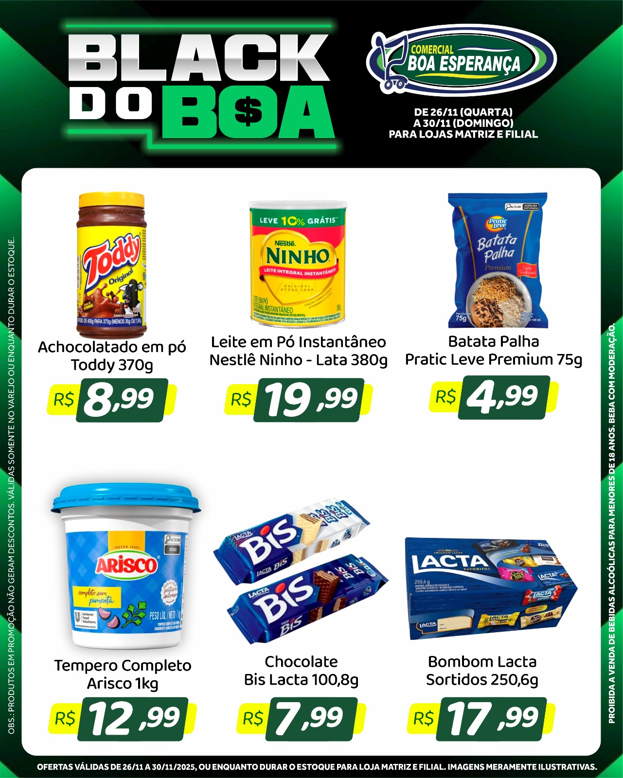 O Comercial Boa Esperança iniciou nesta quarta-feira (26) mais uma edição da tradicional campanha “Black do Boa”, que deve movimentar intensamente o comércio de Aripuanã até o próximo domingo (30). Durante cinco dias, as duas unidades da rede estarão com preços reduzidos em diversos produtos, desde itens essenciais até ofertas especiais nos setores de padaria e açougue.