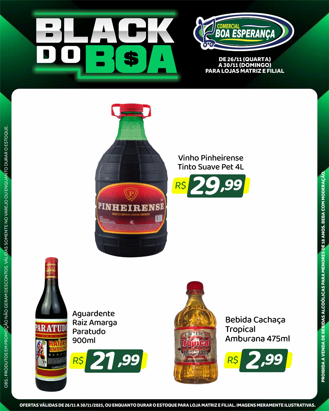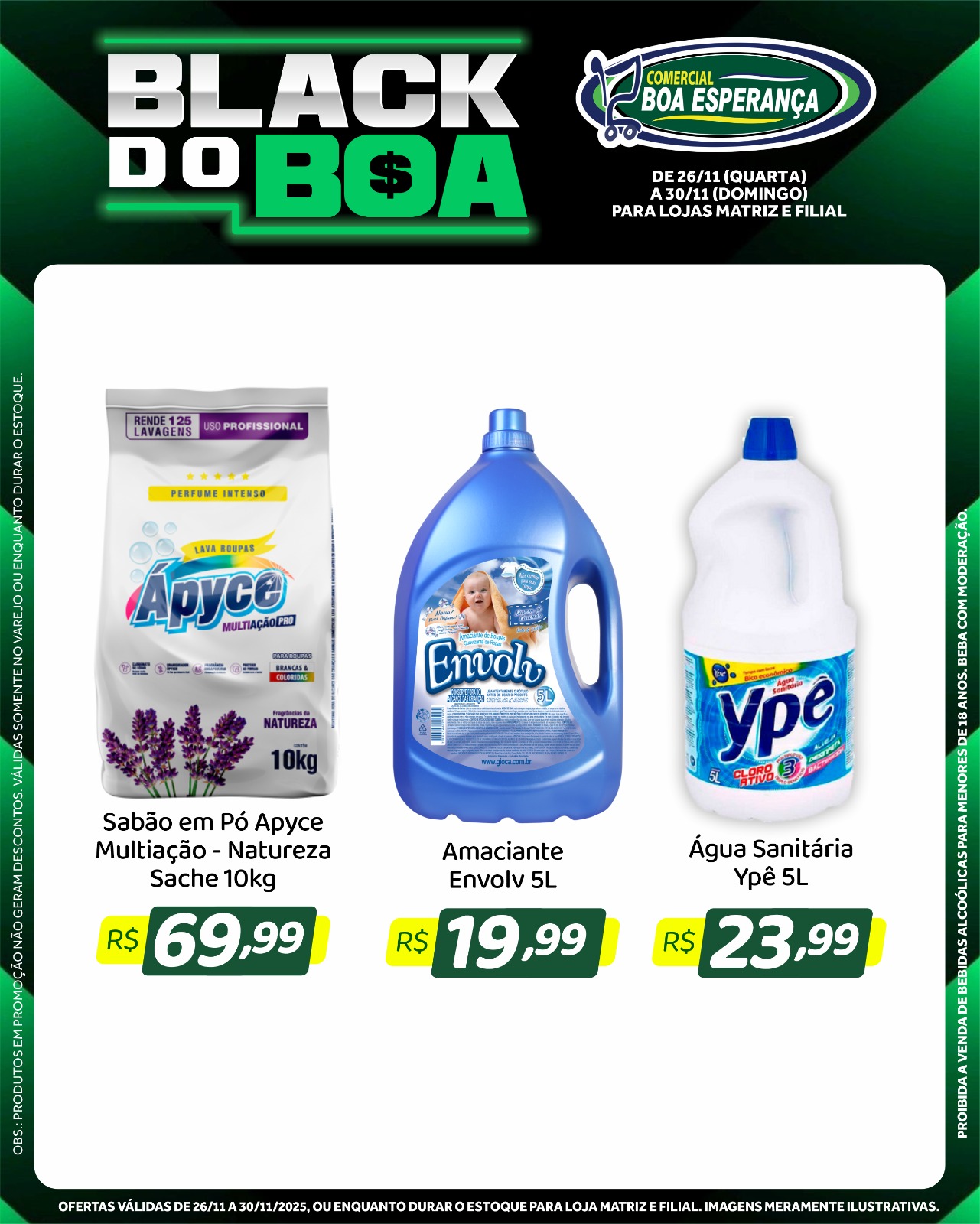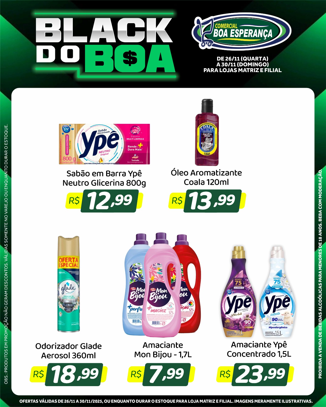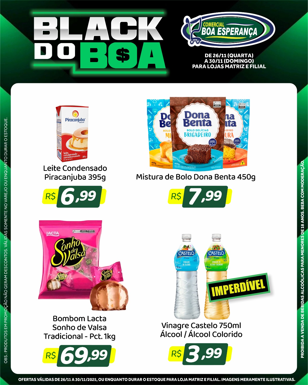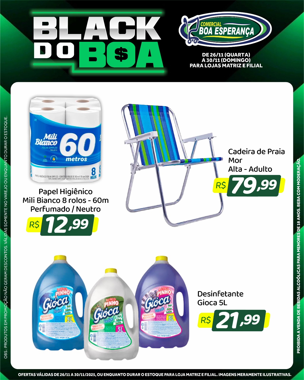 O Comercial Boa Esperança iniciou nesta quarta-feira (26) mais uma edição da tradicional campanha “Black do Boa”, que deve movimentar intensamente o comércio de Aripuanã até o próximo domingo (30). Durante cinco dias, as duas unidades da rede estarão com preços reduzidos em diversos produtos, desde itens essenciais até ofertas especiais nos setores de padaria e açougue.
