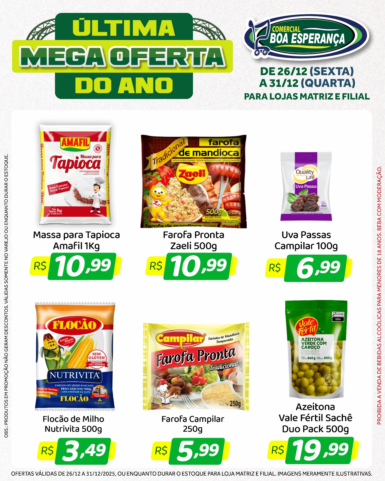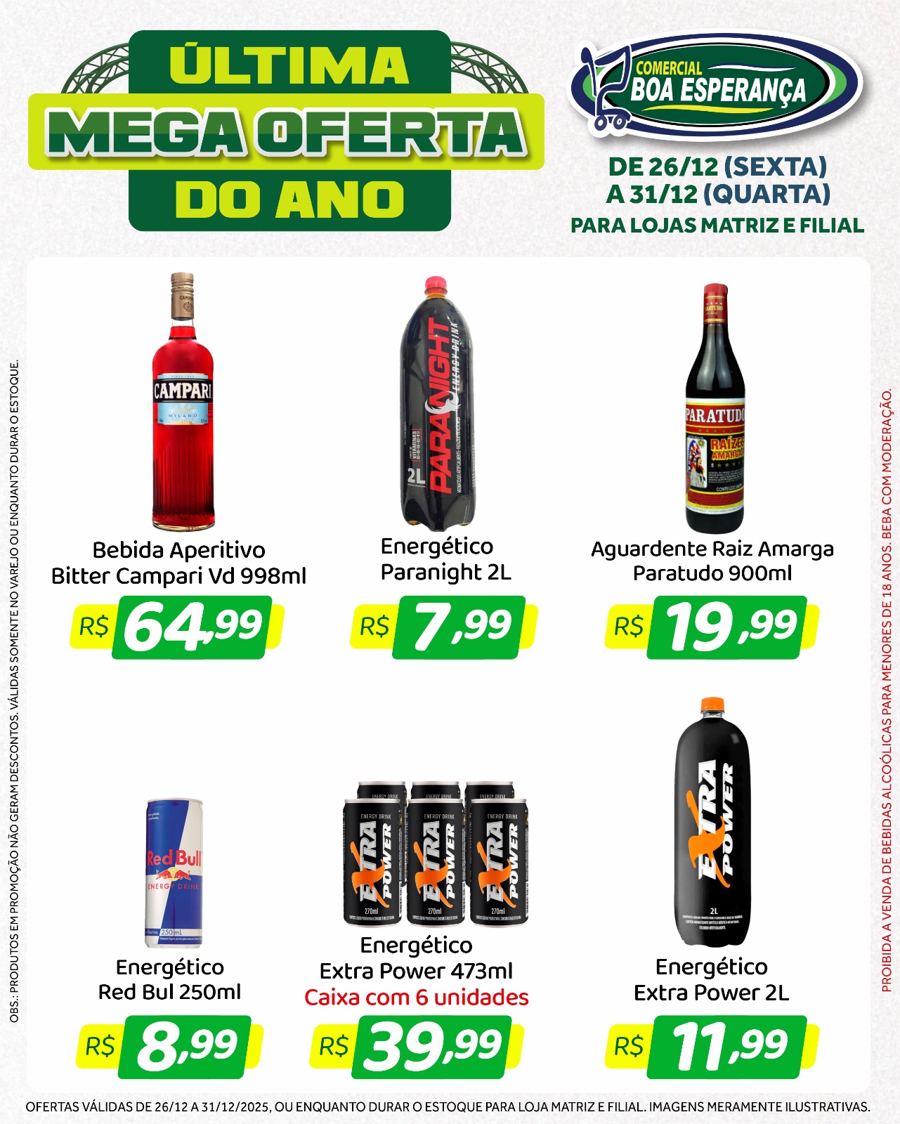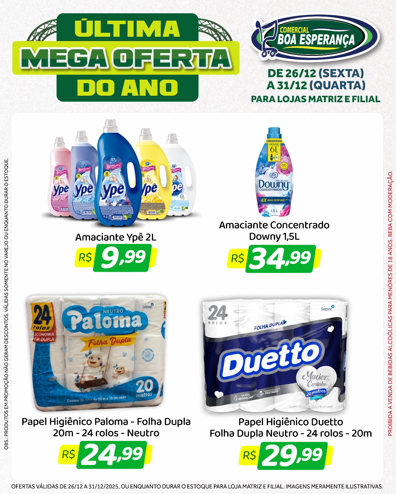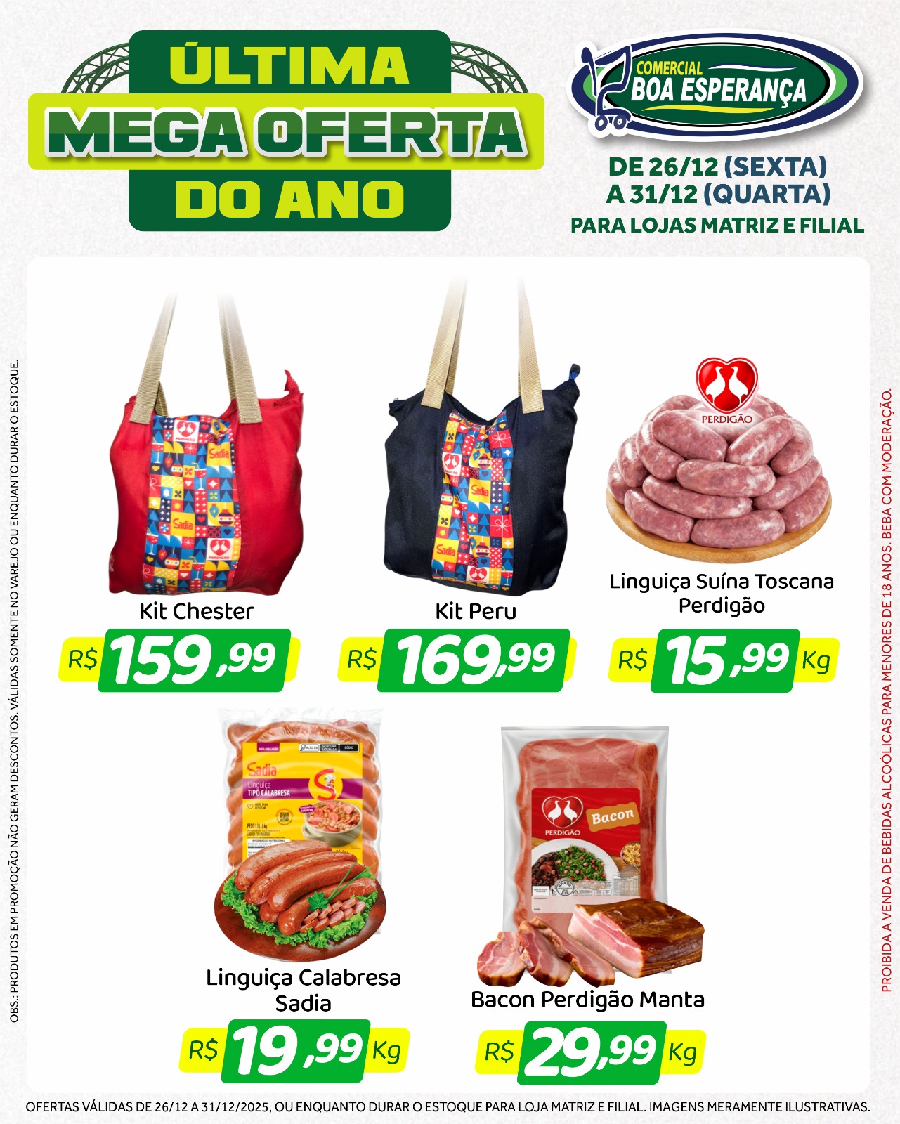 Com a chegada do fim de ano e o aumento da procura por produtos para as confraternizações, o Comercial Boa Esperança deu início, na sexta-feira (26), a mais uma edição da campanha promocional “Última Mega Oferta do Ano”. A ação segue até a próxima quarta-feira (31), véspera de Ano Novo, oferecendo seis dias consecutivos de descontos especiais nas duas unidades da rede em Aripuanã.
