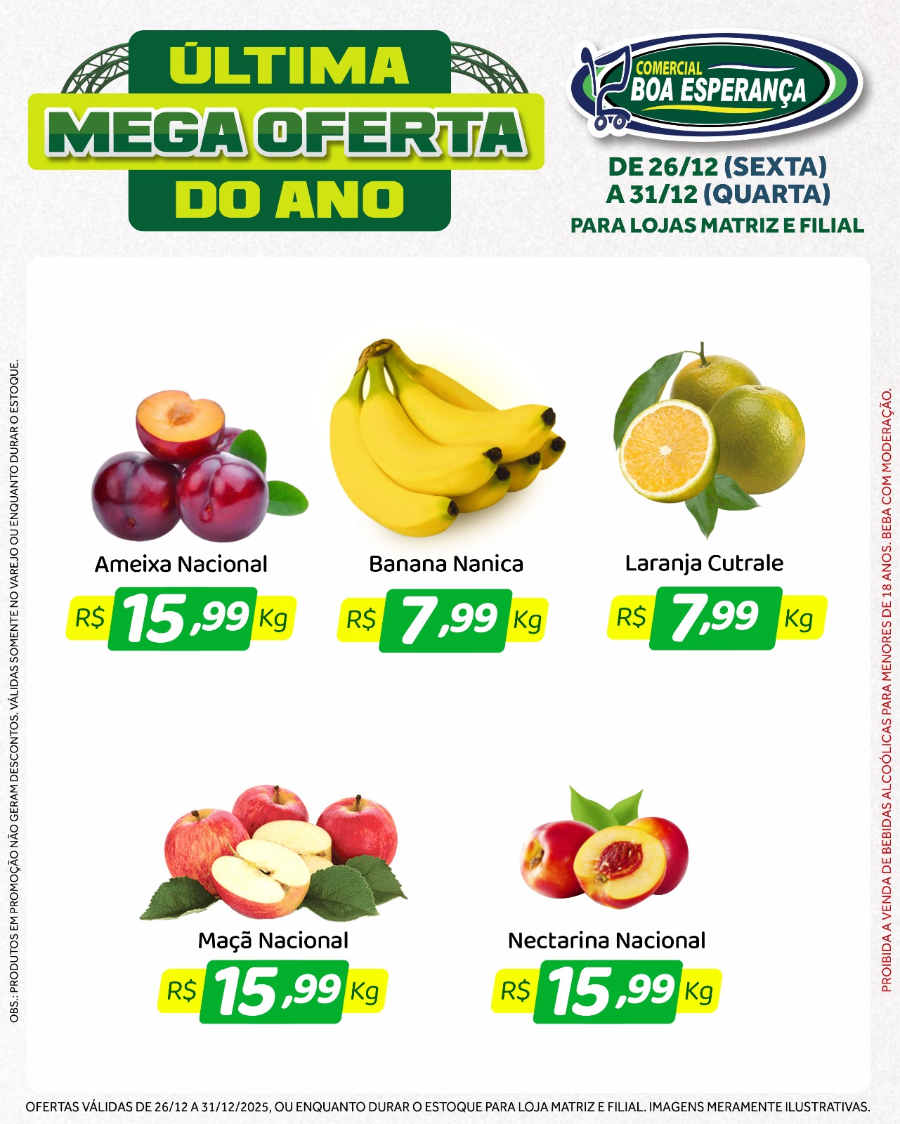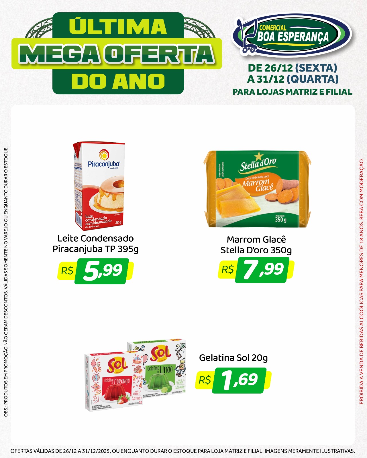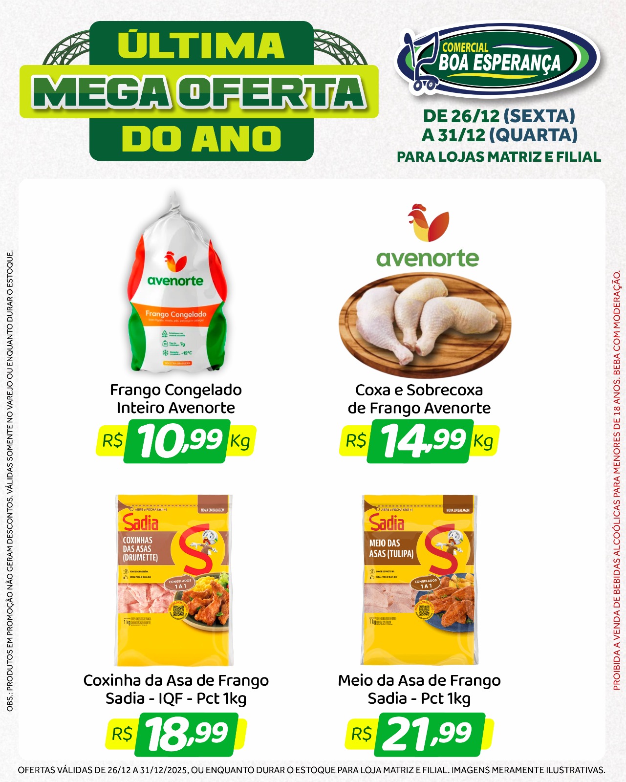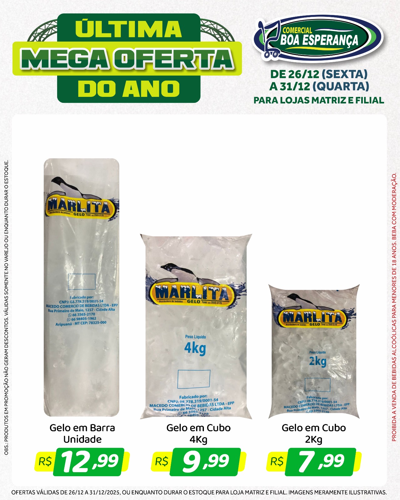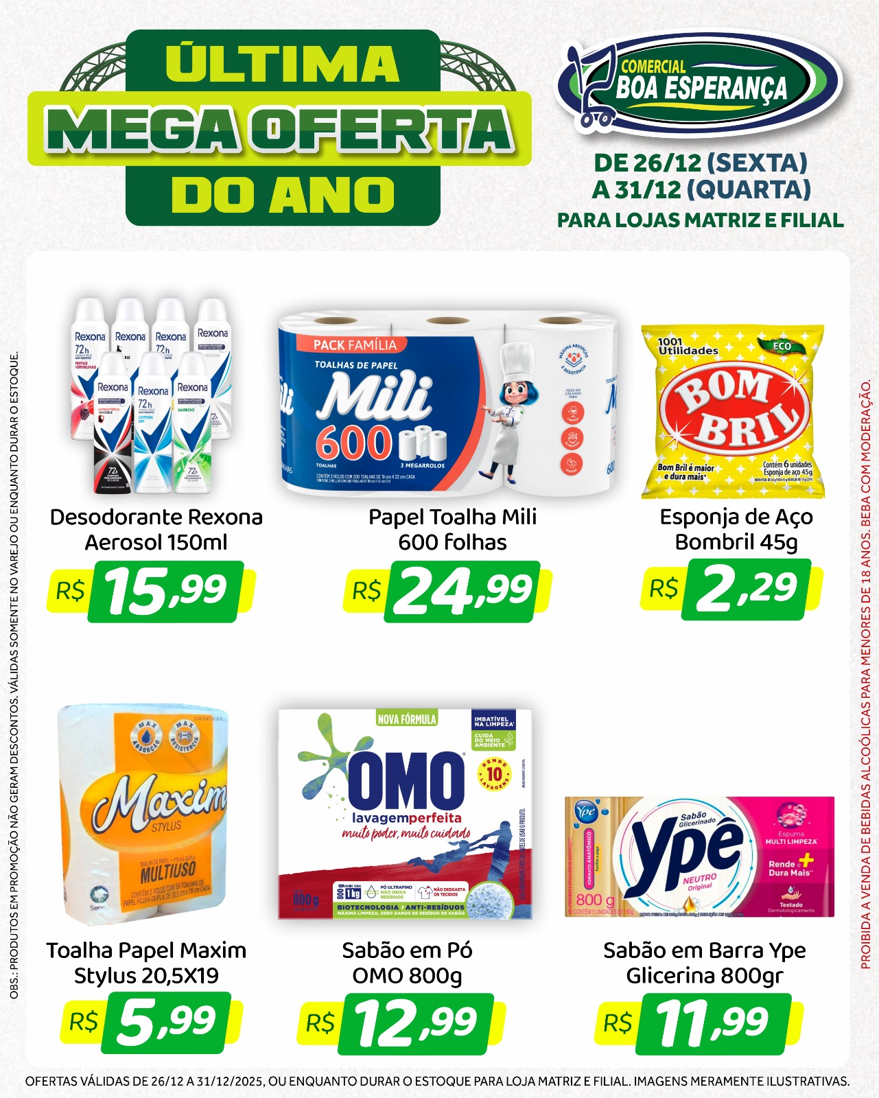 Com a chegada do fim de ano e o aumento da procura por produtos para as confraternizações, o Comercial Boa Esperança deu início, na sexta-feira (26), a mais uma edição da campanha promocional “Última Mega Oferta do Ano”. A ação segue até a próxima quarta-feira (31), véspera de Ano Novo, oferecendo seis dias consecutivos de descontos especiais nas duas unidades da rede em Aripuanã.