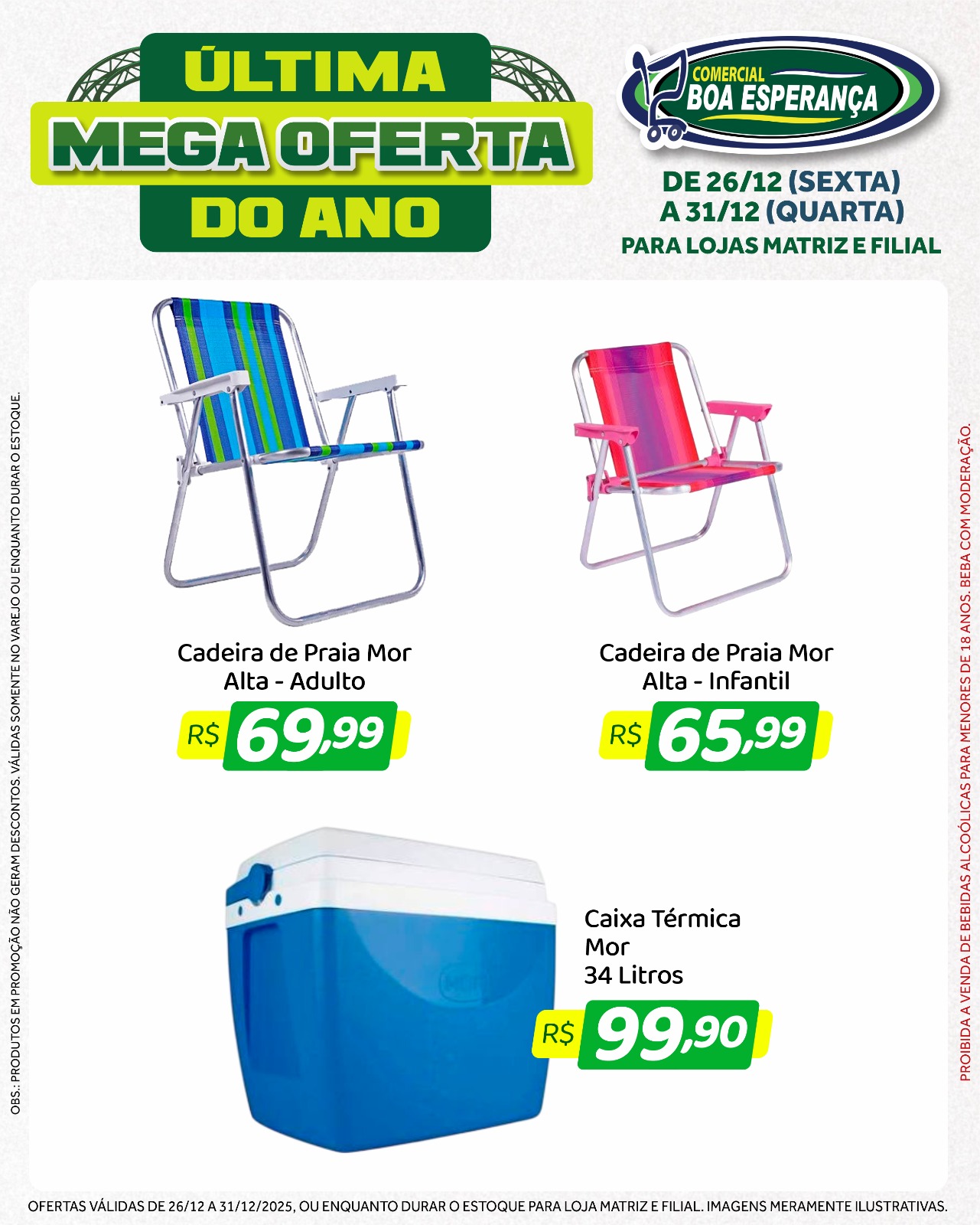 A campanha contempla também produtos sazonais e utilitários, como cadeiras de praia, caixas térmicas, ovo de codorna, pepino em conserva e diversos itens de limpeza, garantindo praticidade às famílias neste período festivo.