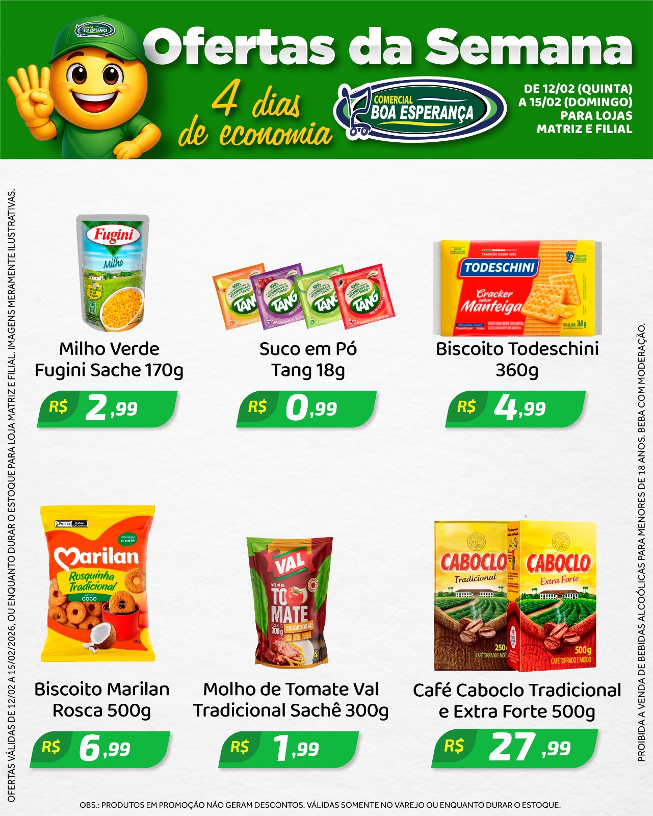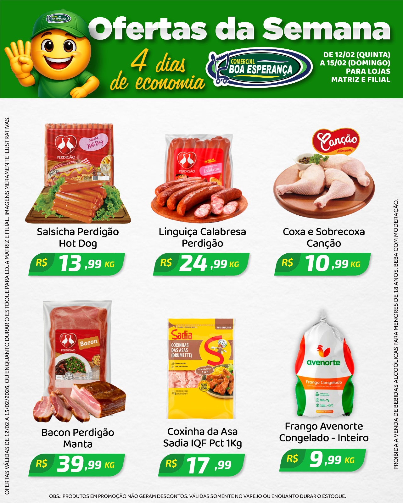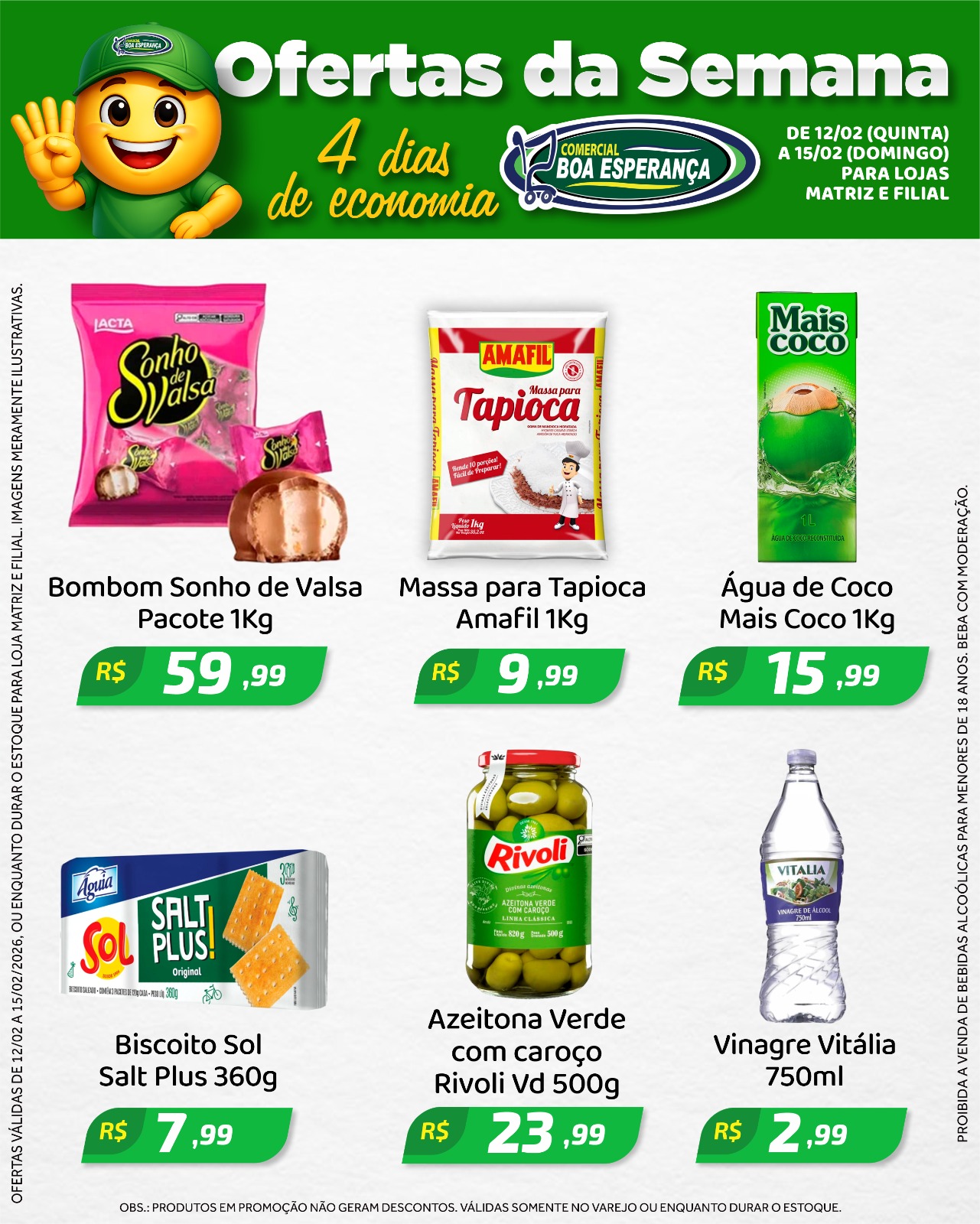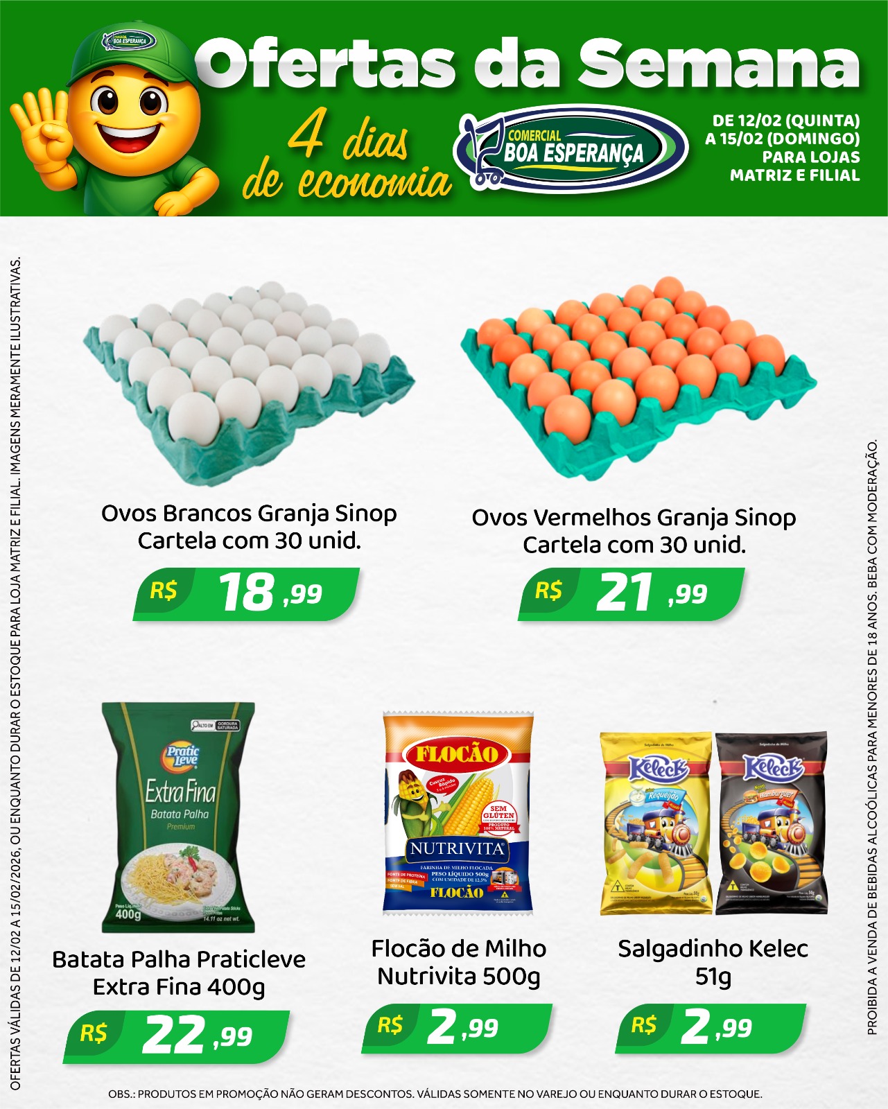 As ofertas estão disponíveis enquanto durarem os estoques nas duas unidades do Comercial Boa Esperança: