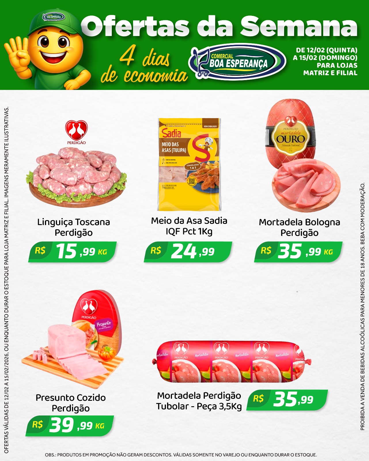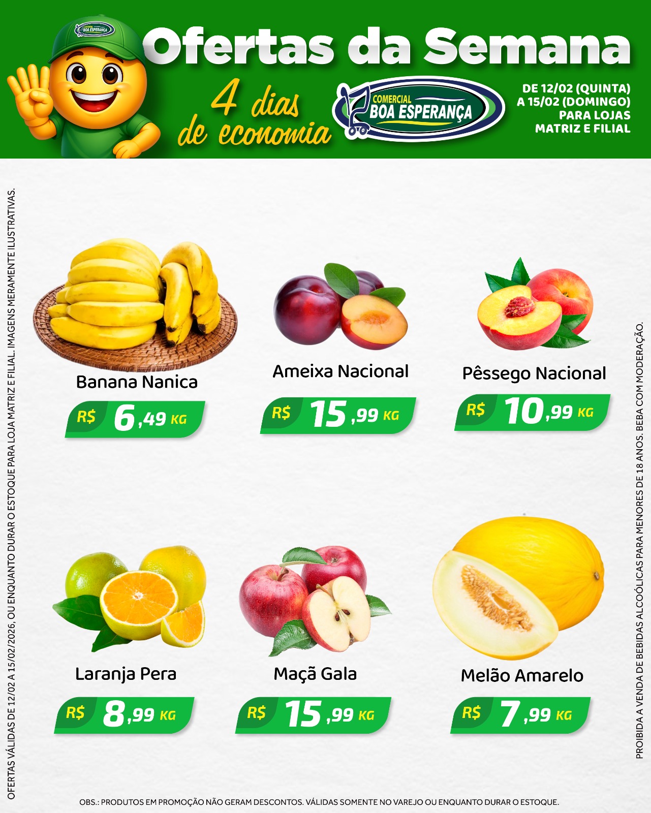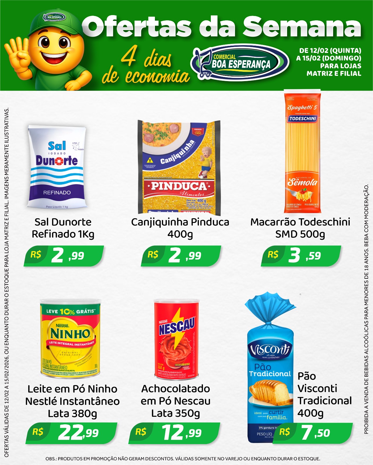 As ofertas estão disponíveis enquanto durarem os estoques nas duas unidades do Comercial Boa Esperança: