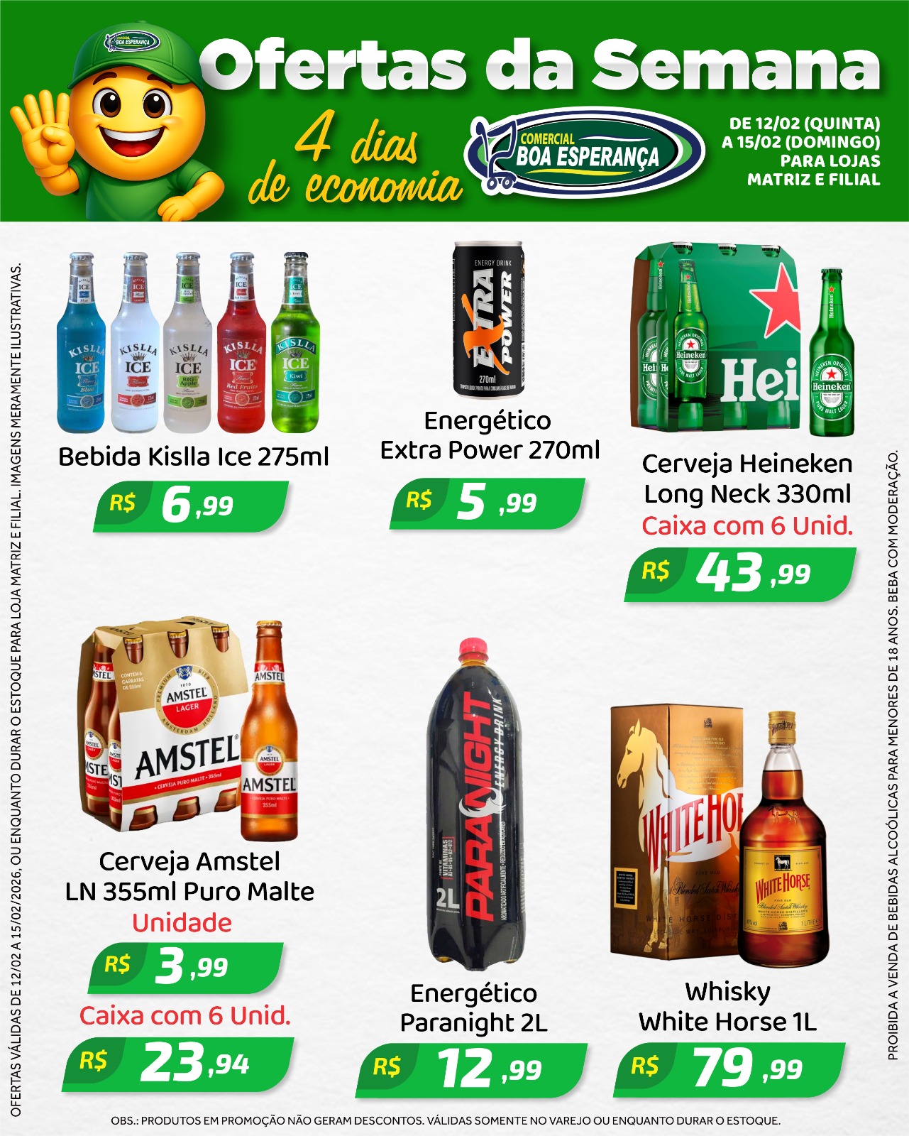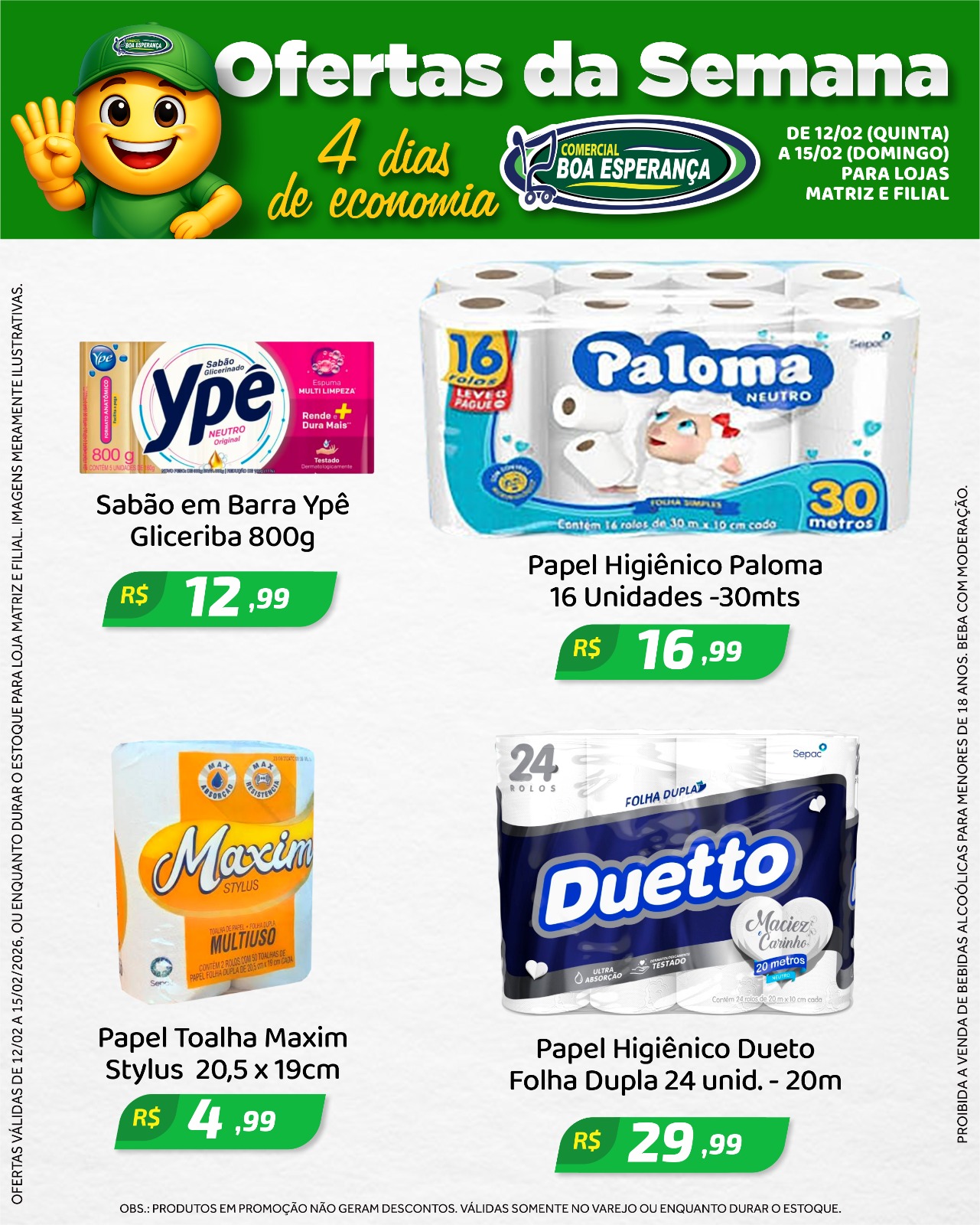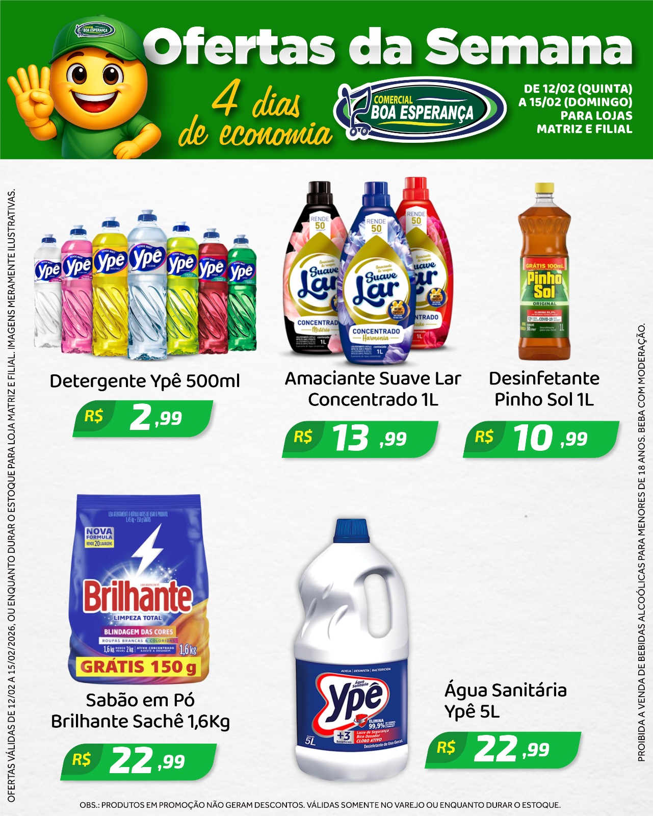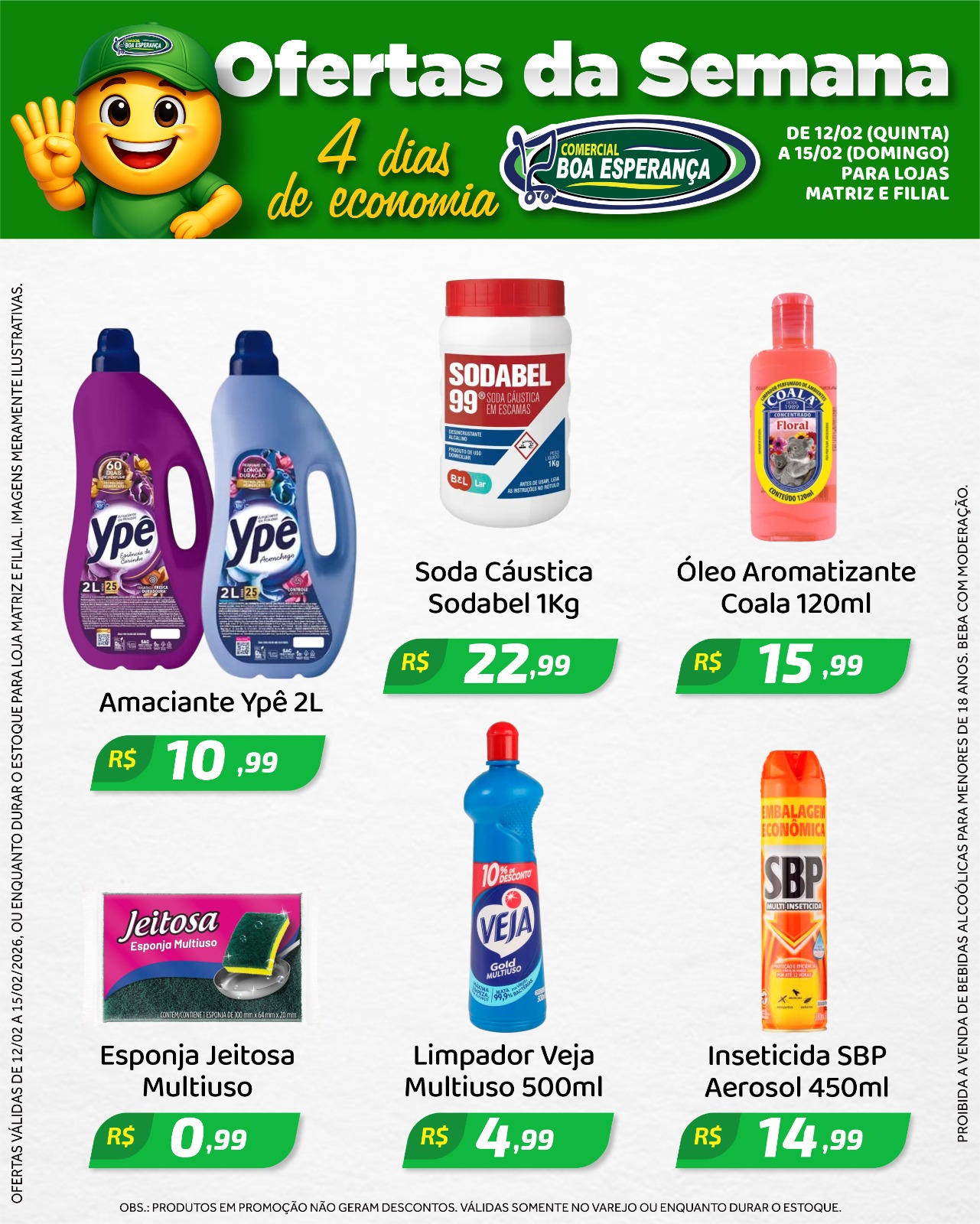 As ofertas estão disponíveis enquanto durarem os estoques nas duas unidades do Comercial Boa Esperança: