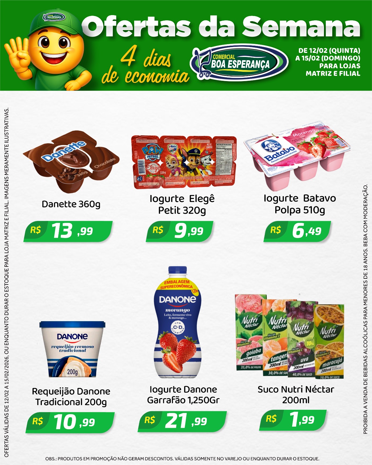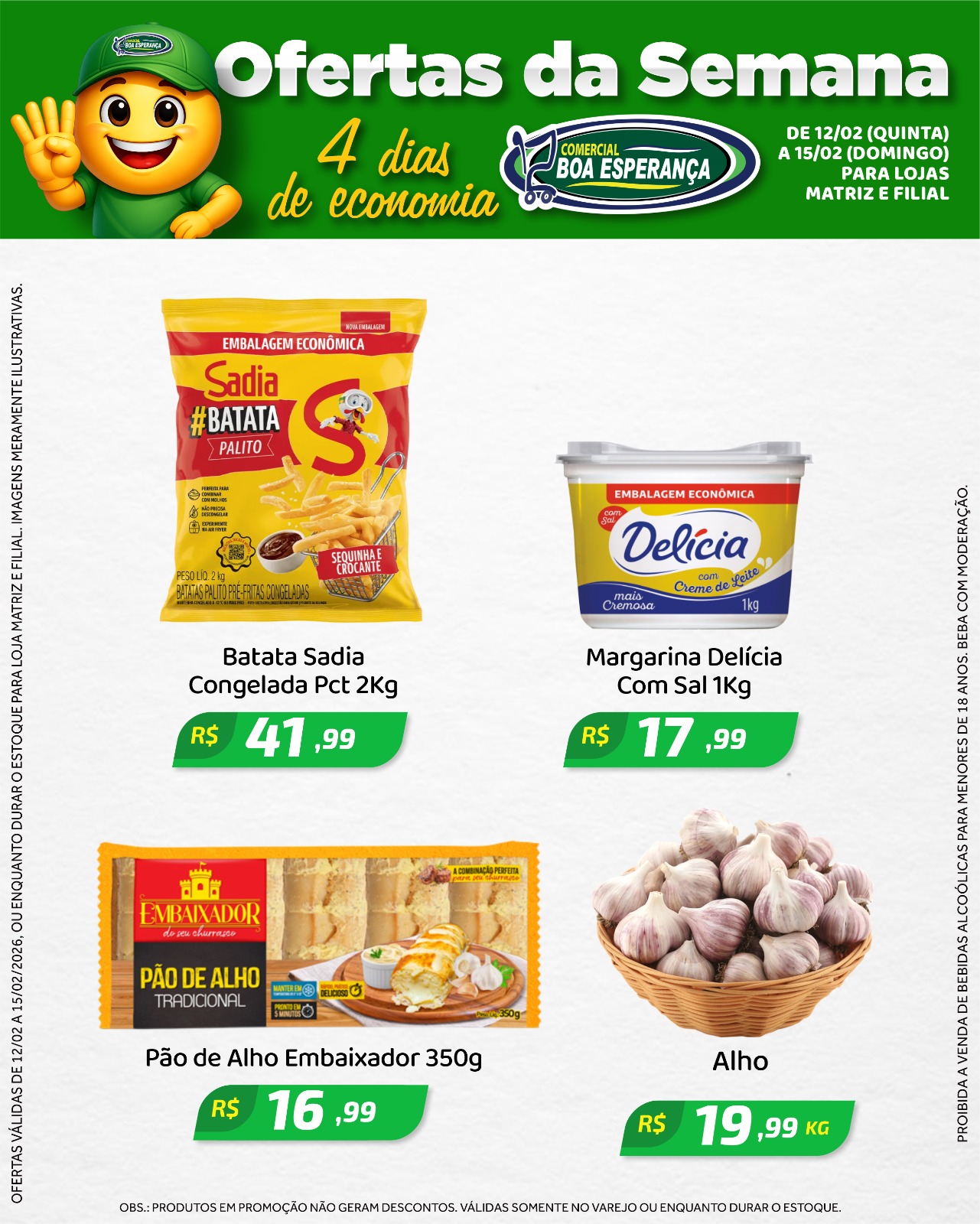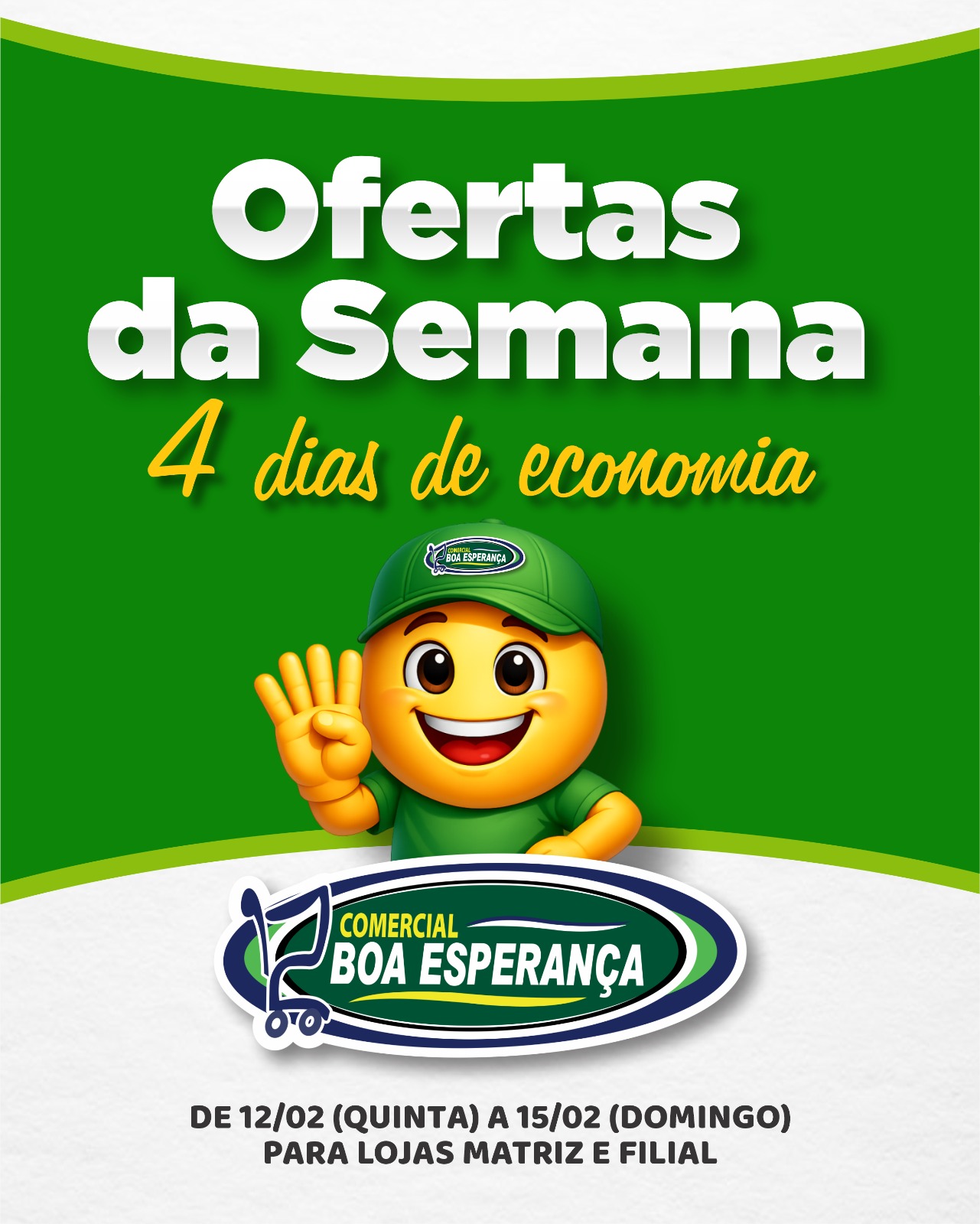 Os consumidores de Aripuanã e região já podem aproveitar mais uma oportunidade para economizar nas compras do dia a dia. O Comercial Boa Esperança iniciou nesta quinta-feira (12) a campanha promocional “Ofertas da Semana do Boa”, válida até o próximo domingo, 15 de fevereiro, nas duas unidades da rede no município.