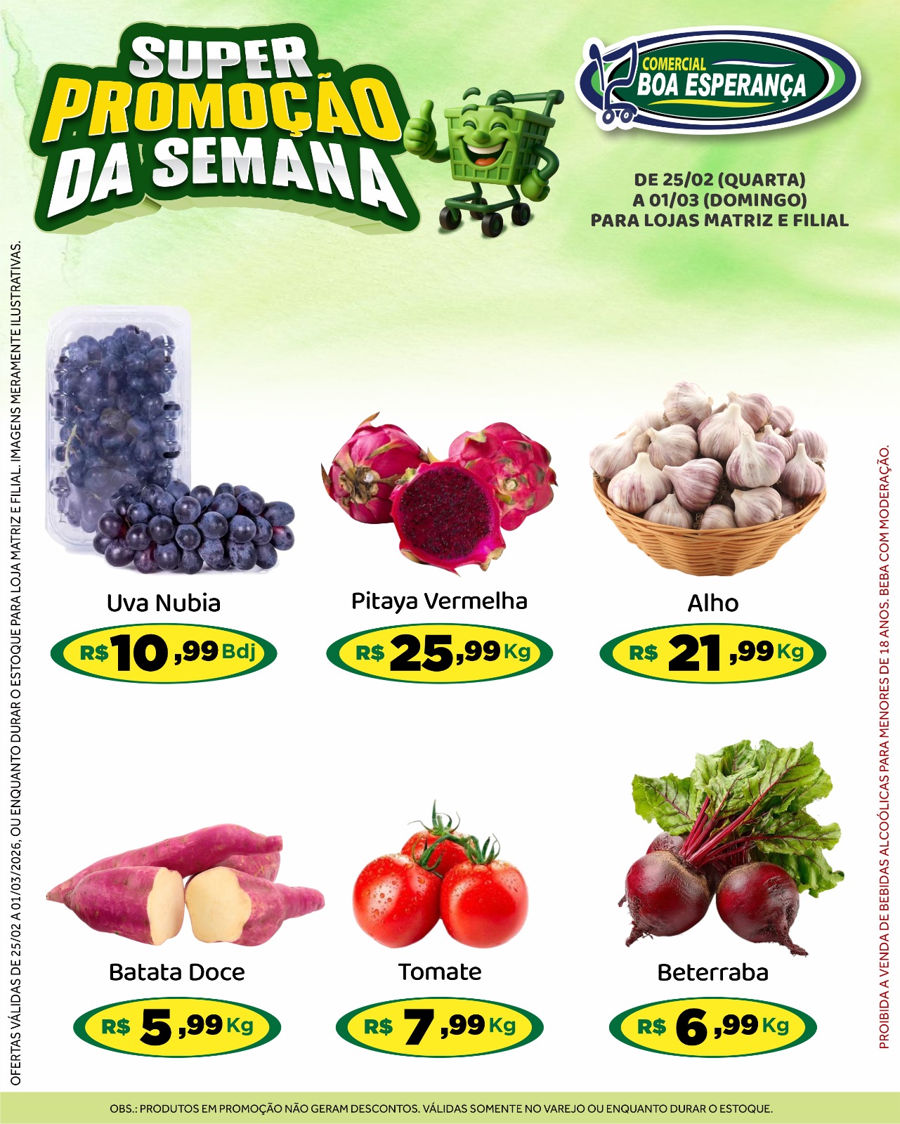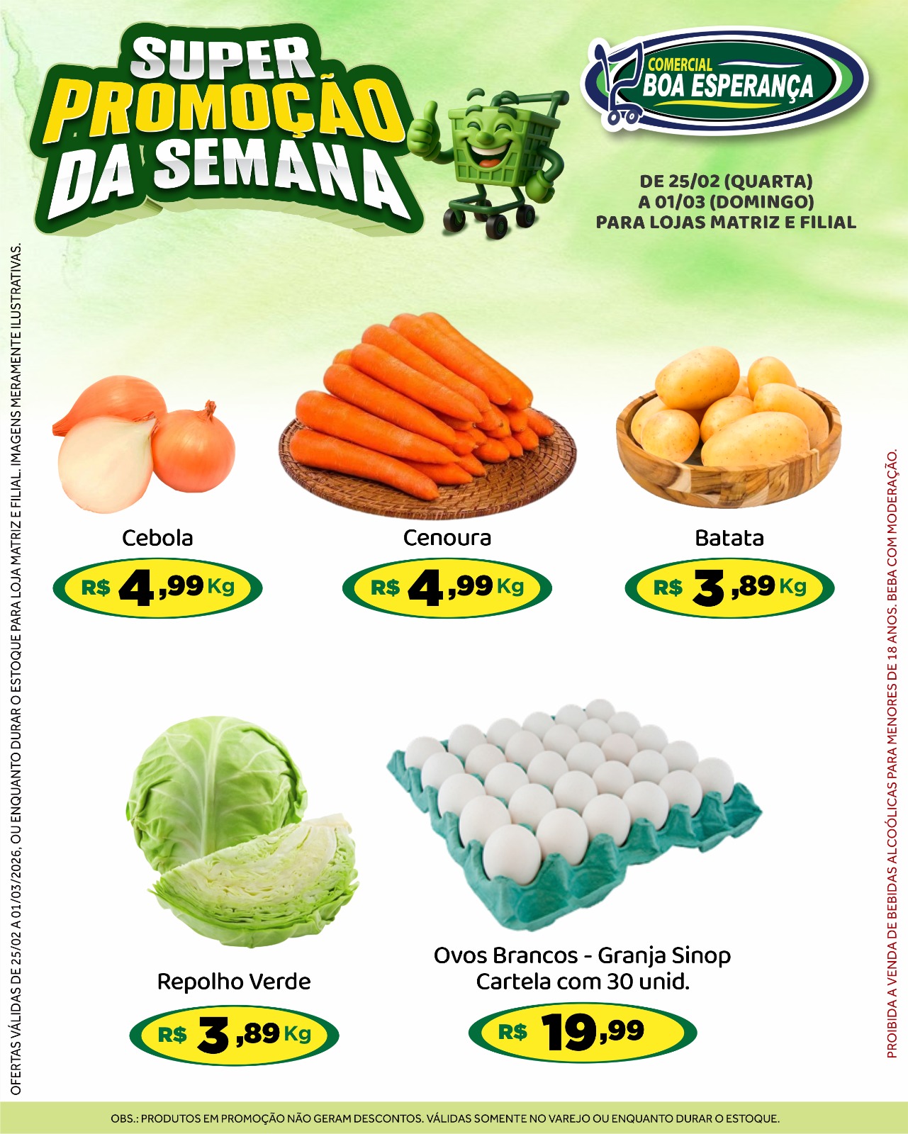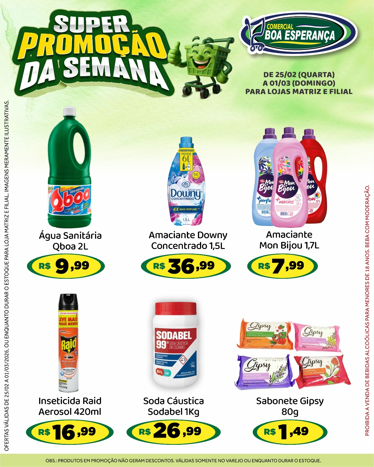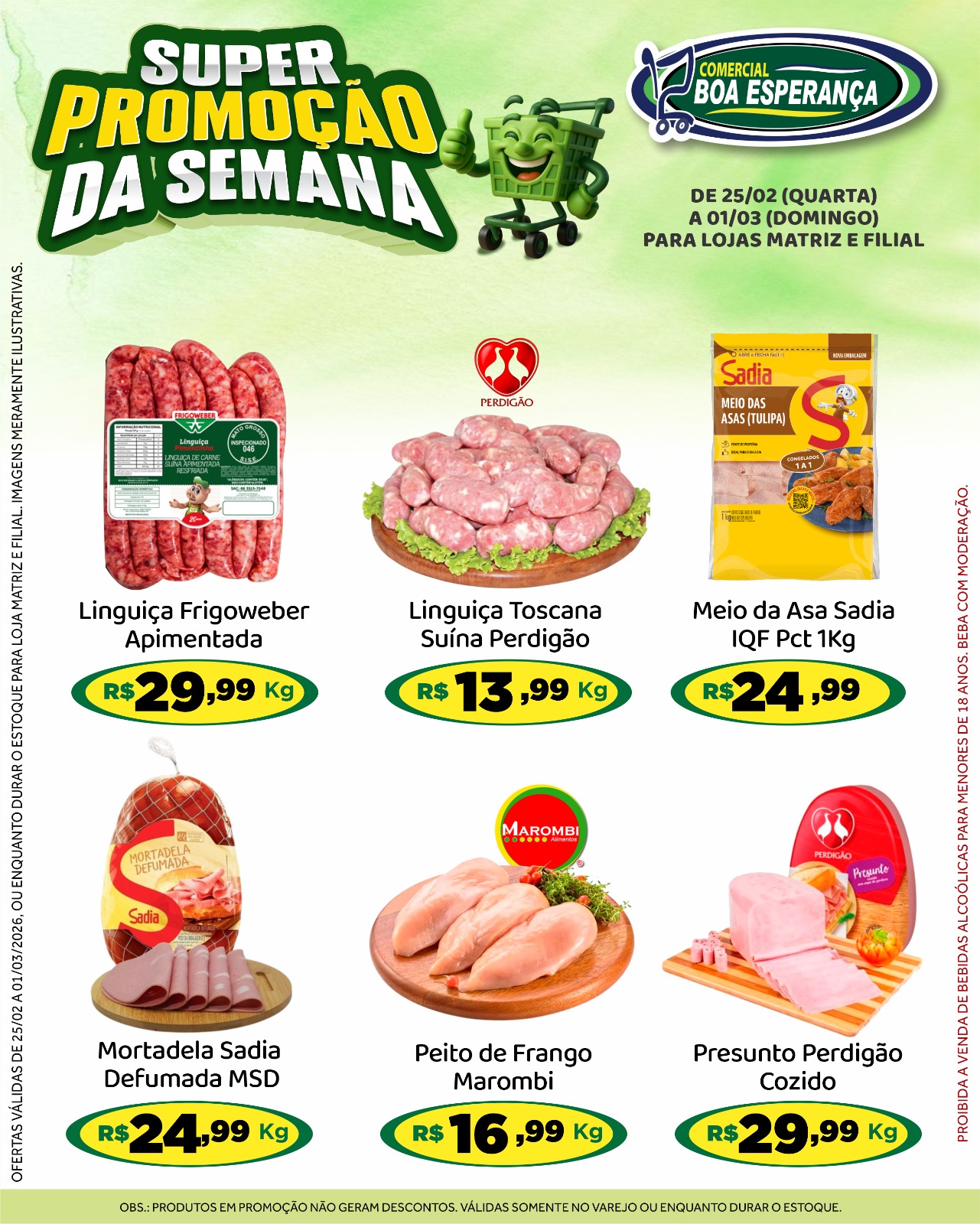 As ofertas estão disponíveis enquanto durarem os estoques nas duas unidades do Comercial Boa Esperança: