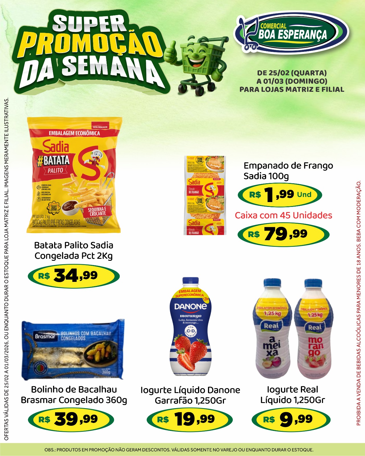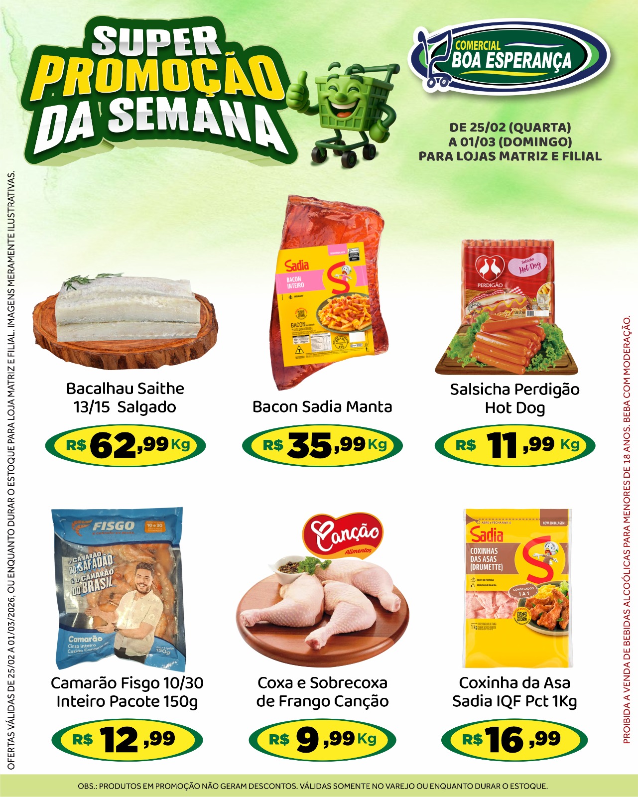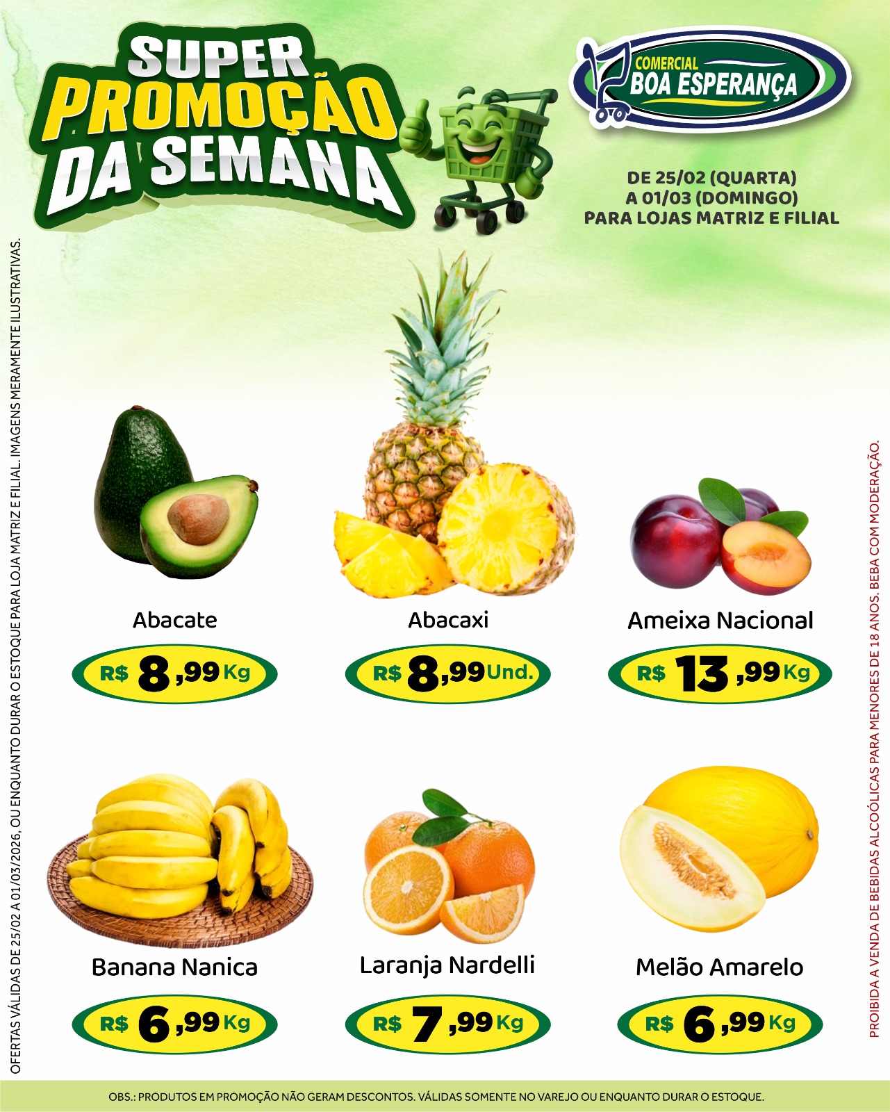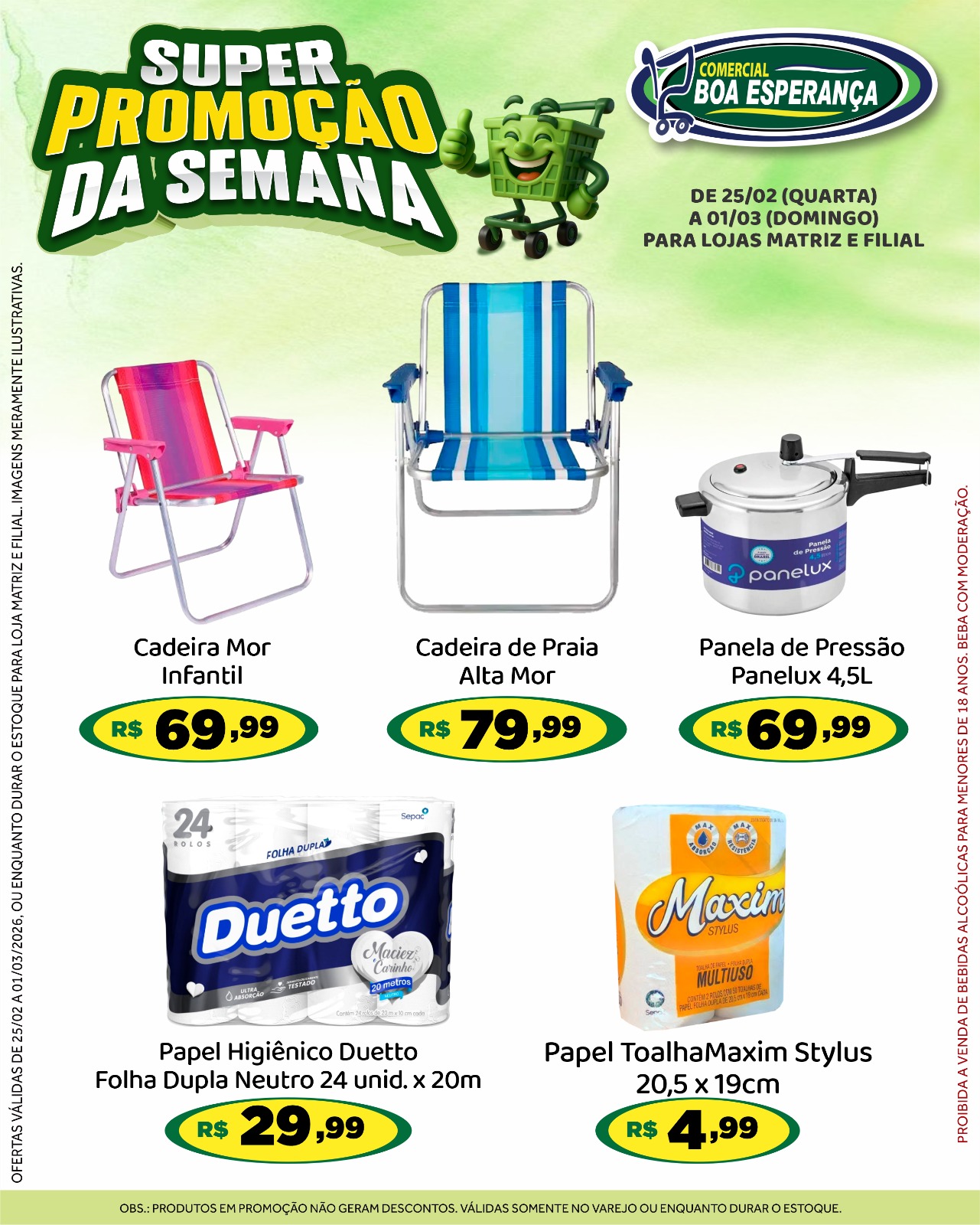 As ofertas estão disponíveis enquanto durarem os estoques nas duas unidades do Comercial Boa Esperança: