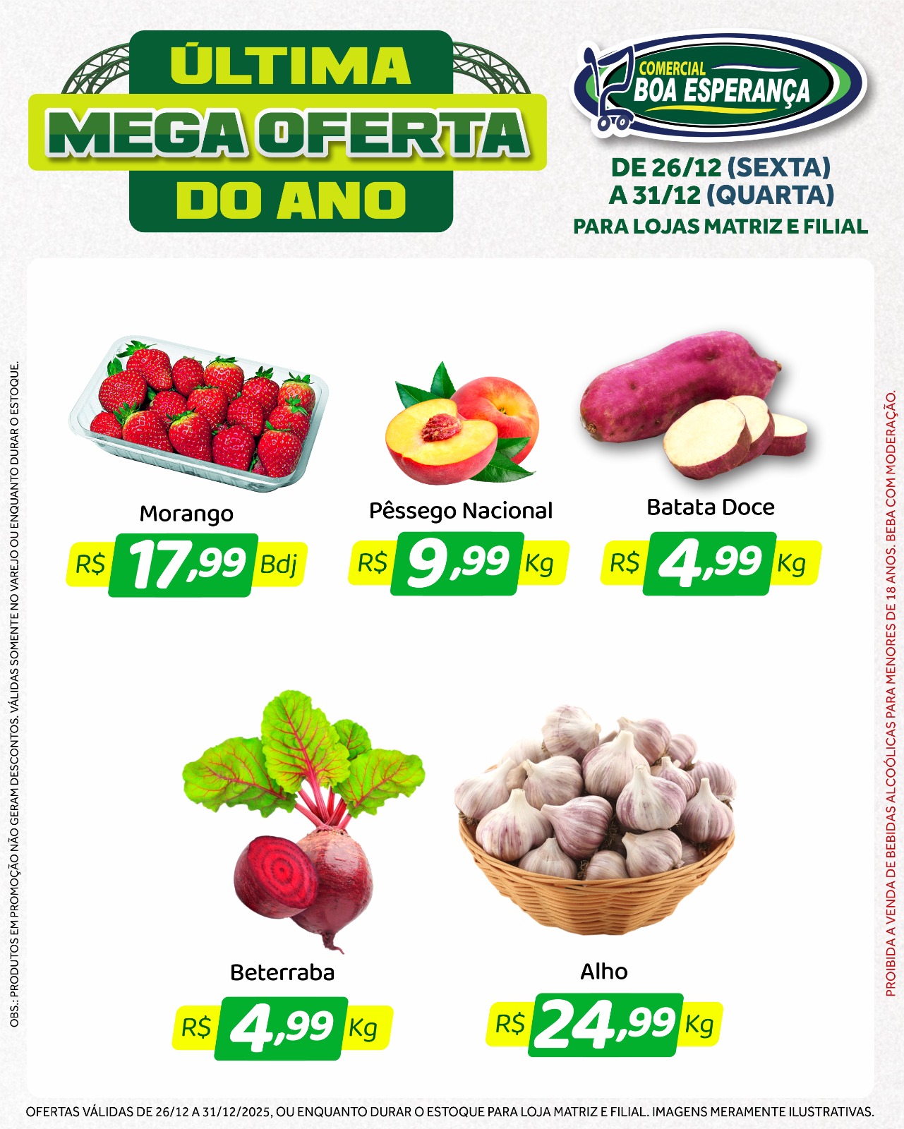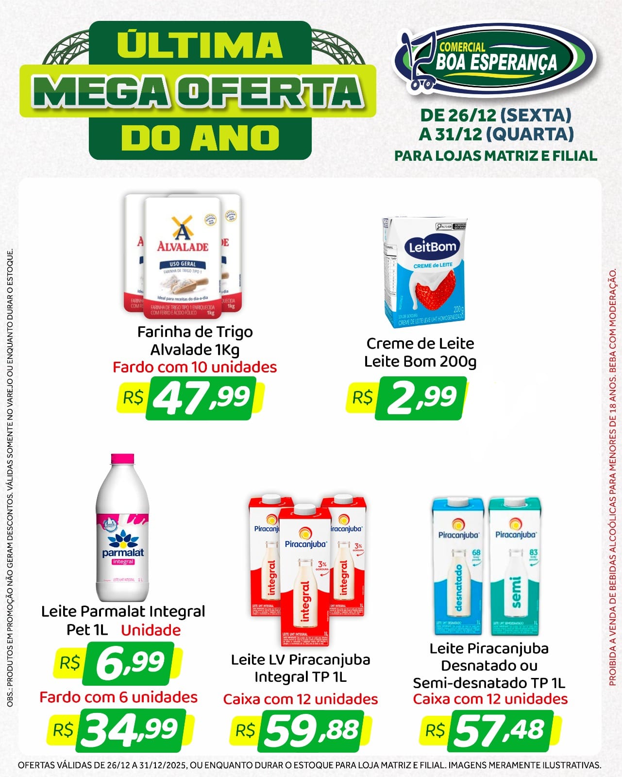 Com a chegada do fim de ano e o aumento da procura por produtos para as confraternizações, o Comercial Boa Esperança deu início, na sexta-feira (26), a mais uma edição da campanha promocional “Última Mega Oferta do Ano”. A ação segue até a próxima quarta-feira (31), véspera de Ano Novo, oferecendo seis dias consecutivos de descontos especiais nas duas unidades da rede em Aripuanã.