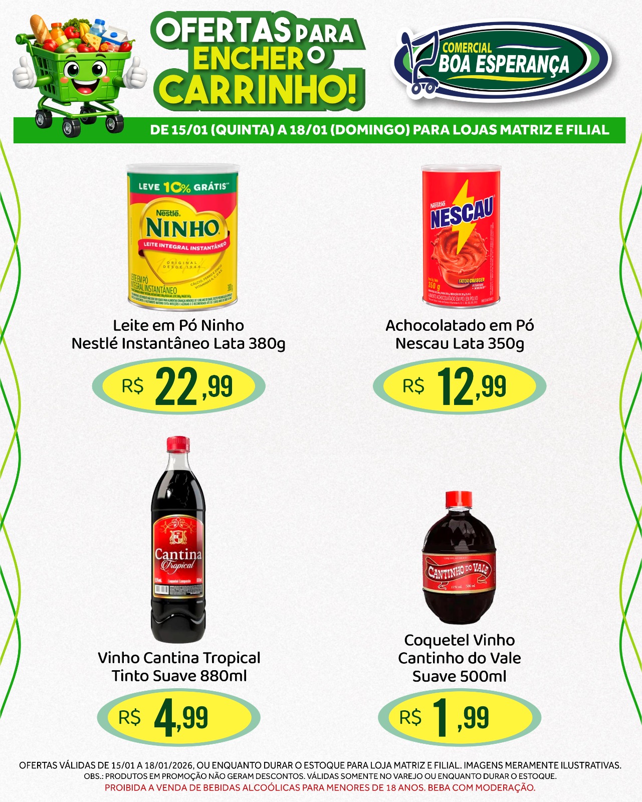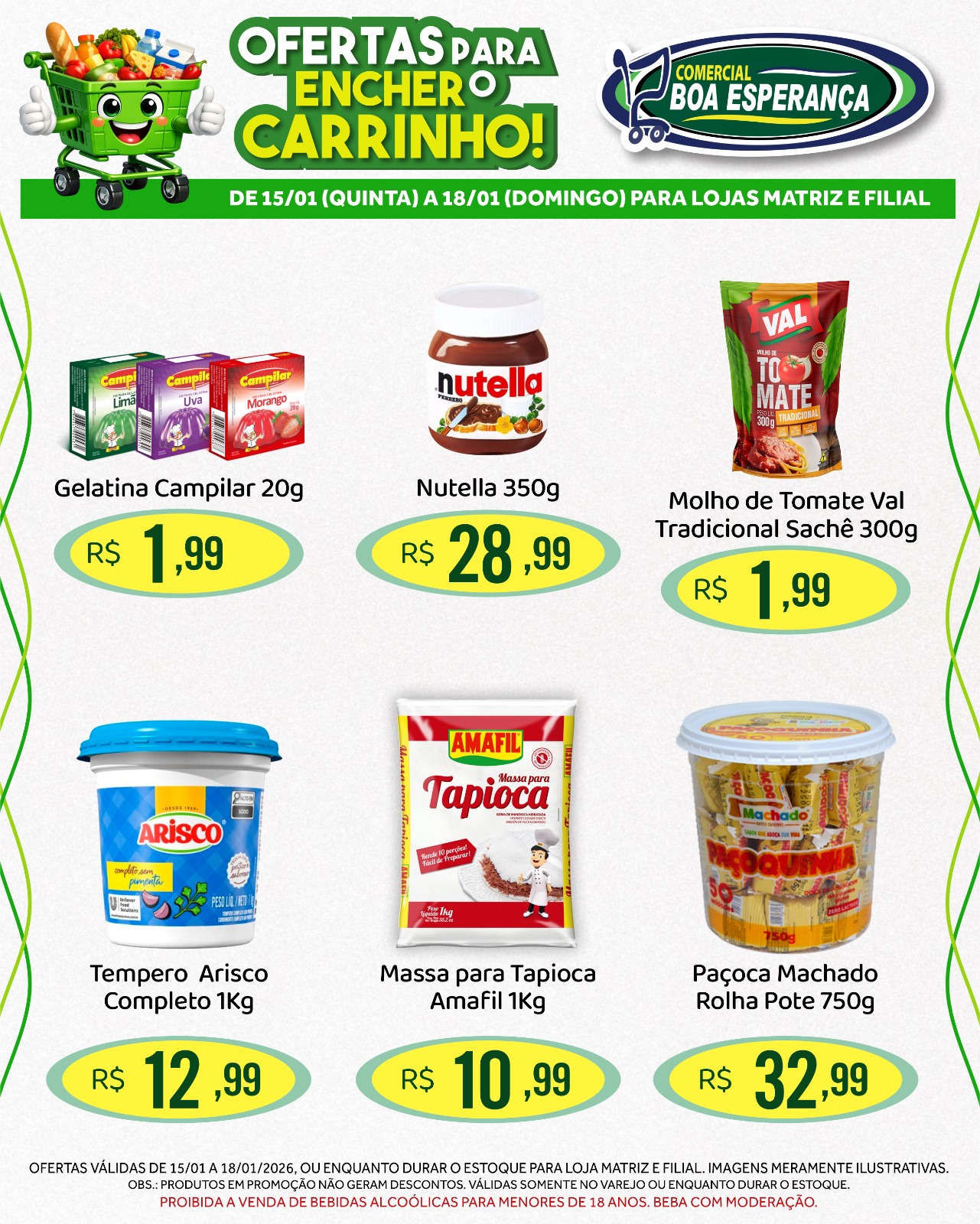 O Comercial Boa Esperança anunciou nesta quinta-feira (15) a campanha promocional “Ofertas para encher o Carrinho”, que segue com descontos especiais até o próximo domingo, 18 de janeiro de 2026, nas duas unidades da rede em Aripuanã. A iniciativa estende por quatro dias consecutivos as condições diferenciadas de compra, atendendo à alta procura dos consumidores neste início de ano.