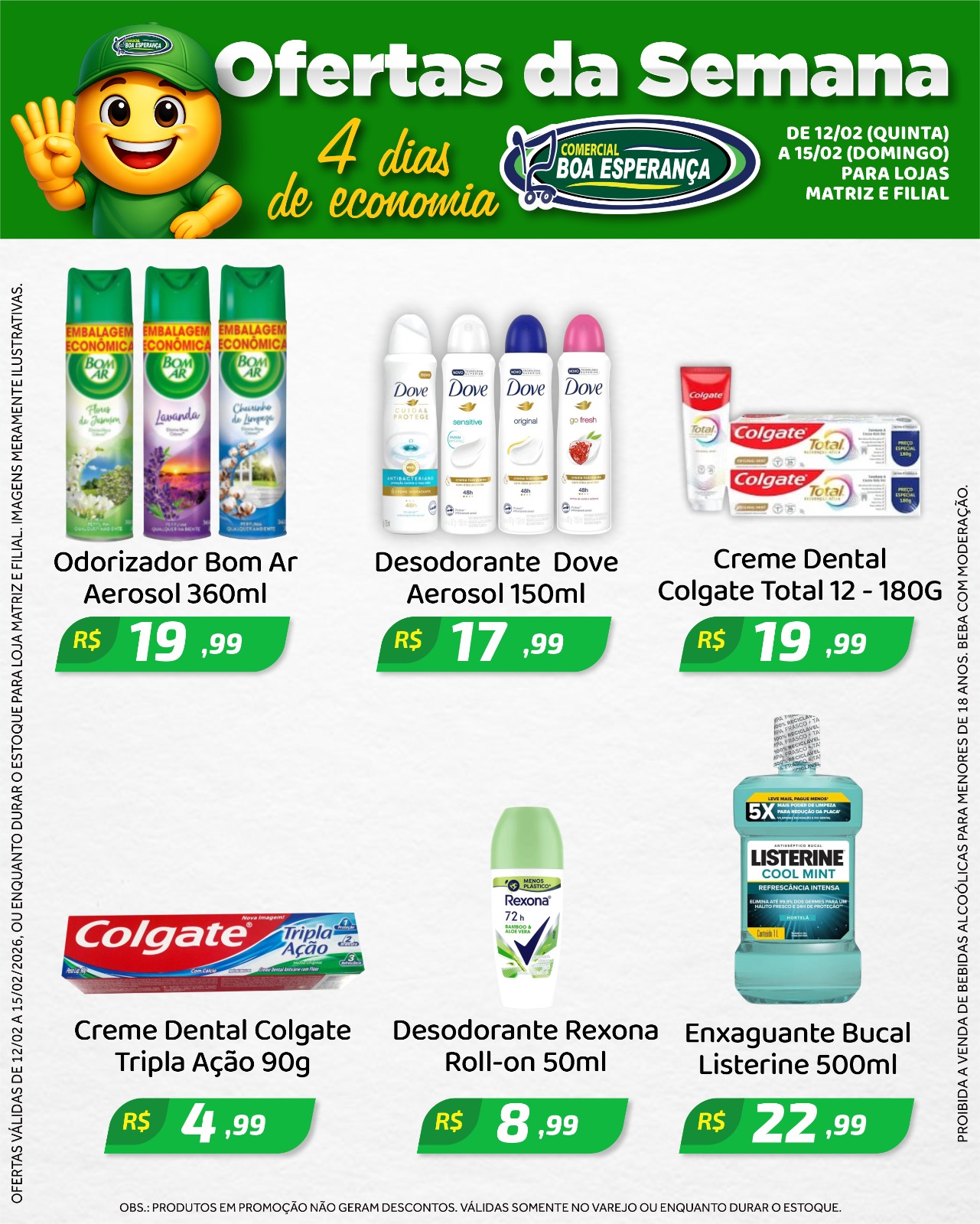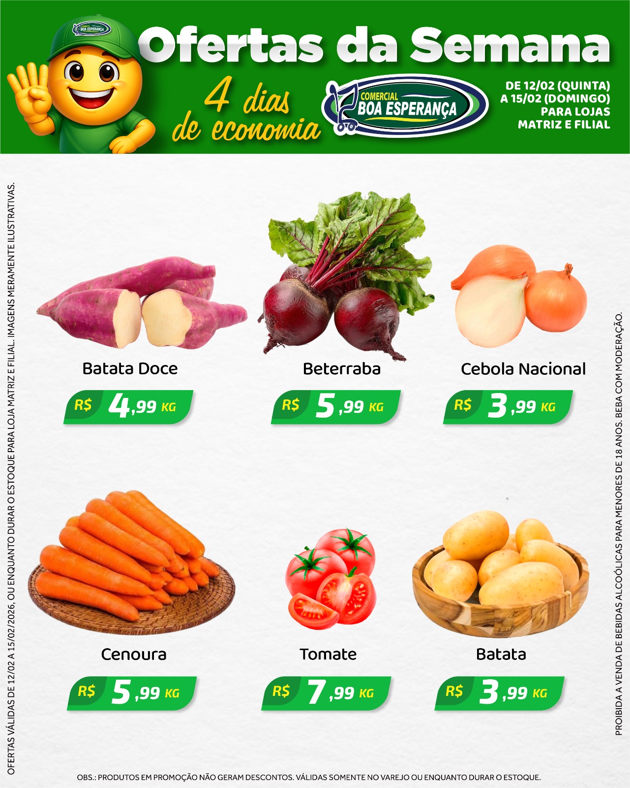 As ofertas estão disponíveis enquanto durarem os estoques nas duas unidades do Comercial Boa Esperança: